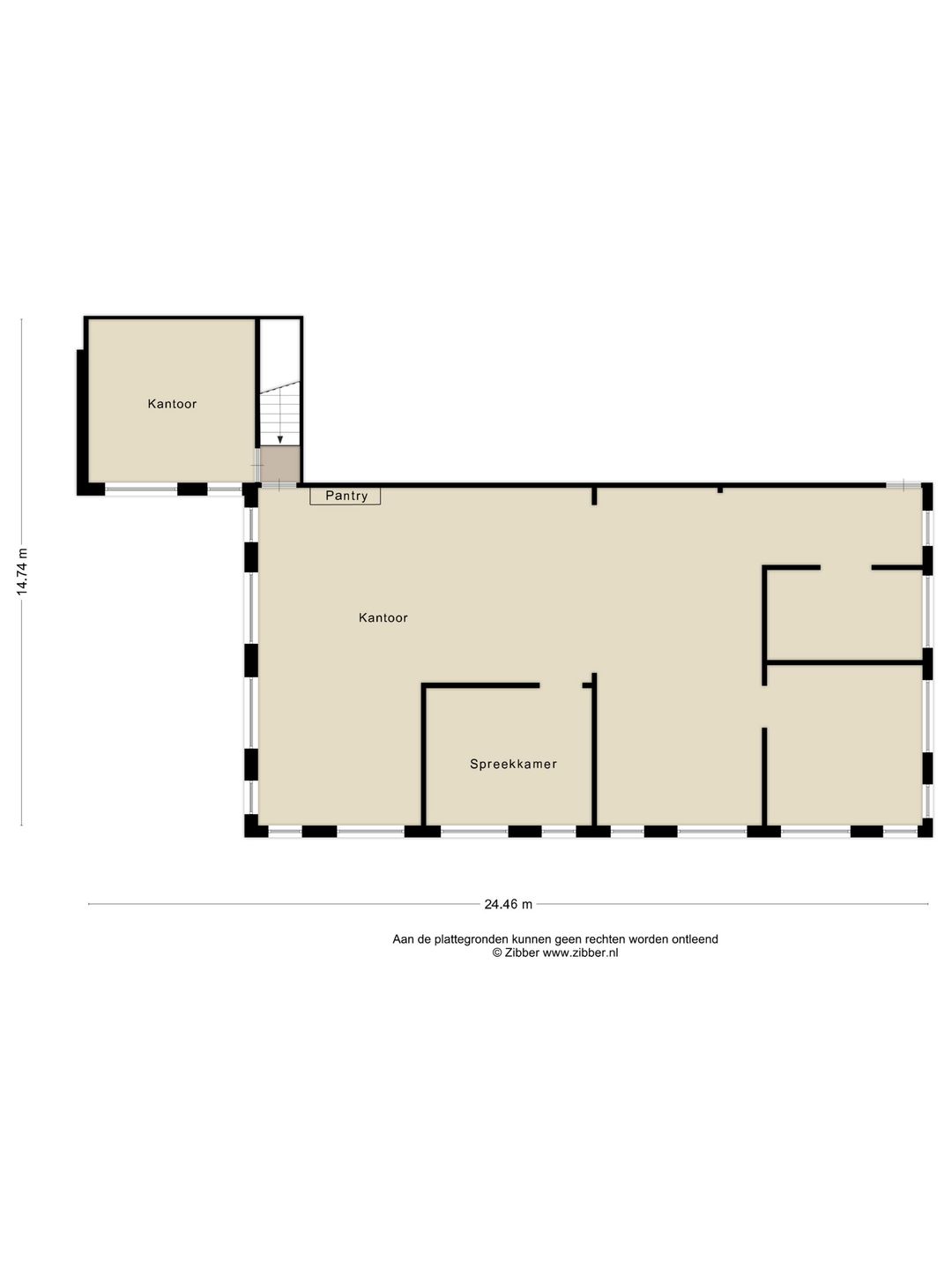 Het is eventueel mogelijk om circa 100m² kantoorruimte op de 1e verdieping minder te huren, maar dit heeft niet de voorkeur van onze opdrachtgever.