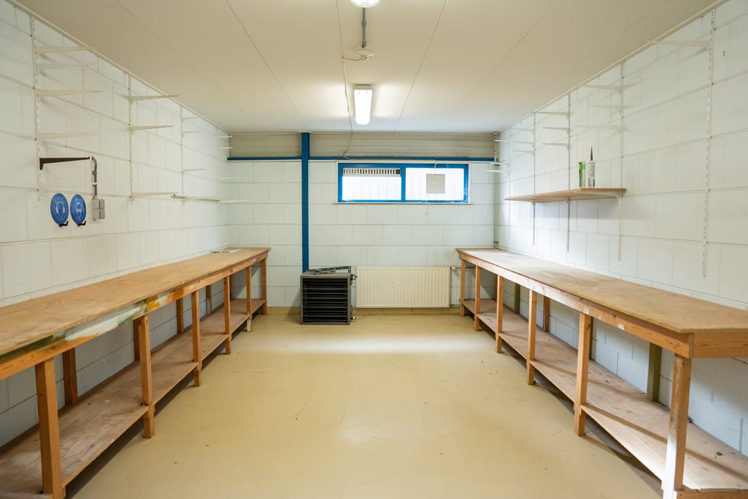 BG: Voor het pand bevinden zich 4 parkeerplaatsen en naast het pand bevindt zich een afsluitbaar terrein. Het pand kan u betreden via de overheaddeur (toegang loods) of de centrale entree aan de voorzijde van het pand. Vanuit de ruime entree, heeft u toegang tot de kantine en de werkplaats op de begane grond. Via het trappenhuis bereikt u de verdieping. De ruime bedrijfshal is deels voorzien van een entresolvloer. Een lichtstraat biedt veel daglicht en u vindt hier een toilet en wasruimte. Aan de achterzijde van de loods bevinden zich 3 afgesloten werkruimten, bijvoorbeeld voor extra opslagmogelijkheden.