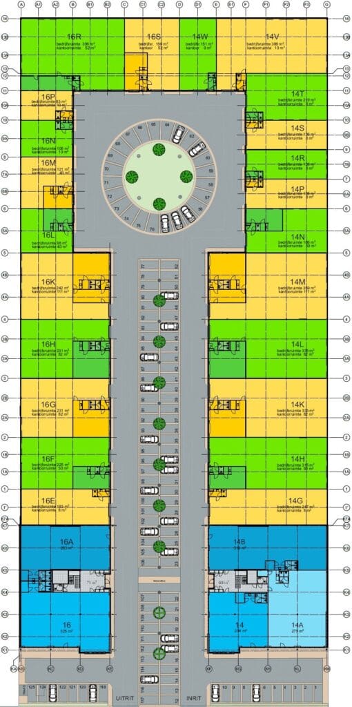 Parkeren kan op eigen terrein met voldoende mogelijkheid om dichtbij de bedrijfsunit te laden en te lossen. Tevens voorzien van elektrische oplaadpunten voor zowel auto’s als fietsen.
