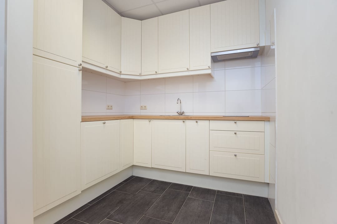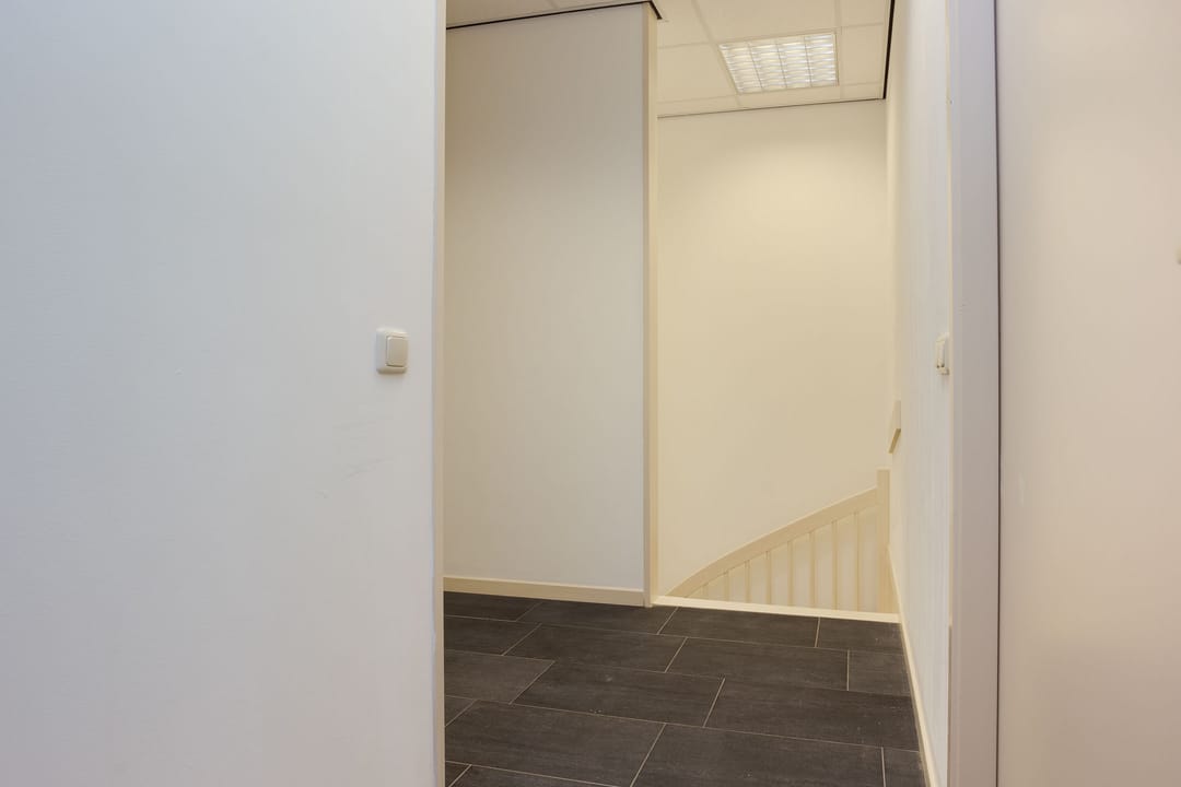 Eerste verdieping: keukenruimte met tegelvloer en moderne keukeninrichting v.v. 2 pits kookplaat, afzuigkap, koelkast en vaatwasser; Kantoorruimte voorzijde met tegelvloer; Portaal met tegelvloer, moderne toiletruimte en inbouwkast met opstelling c.v.-ketel; Showroom met tegelvloer en mogelijkheid voor installatie lichttube’s t.b.v. daglicht.