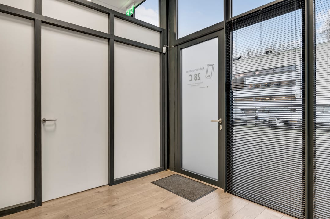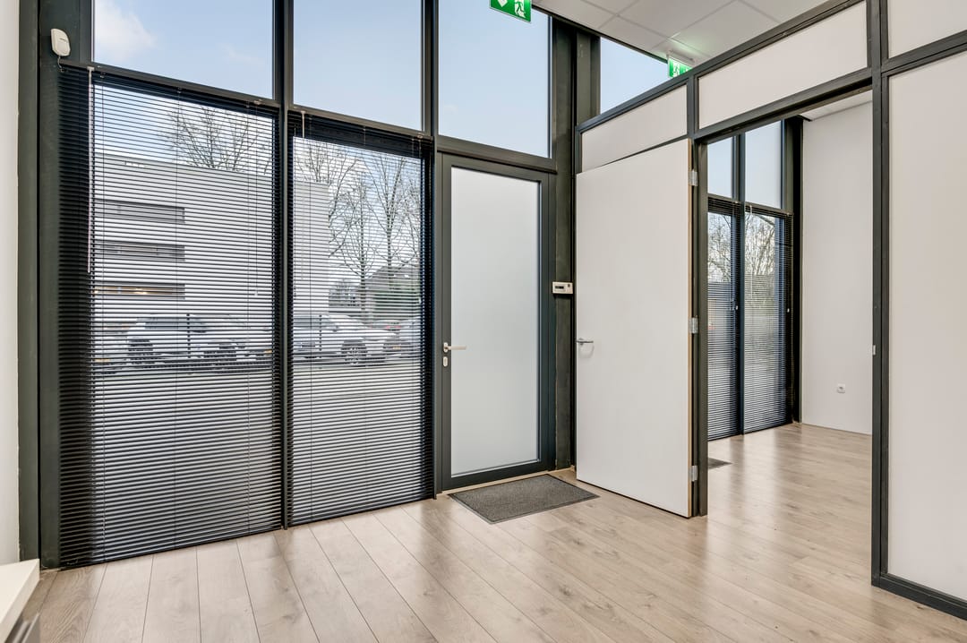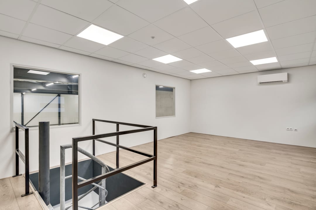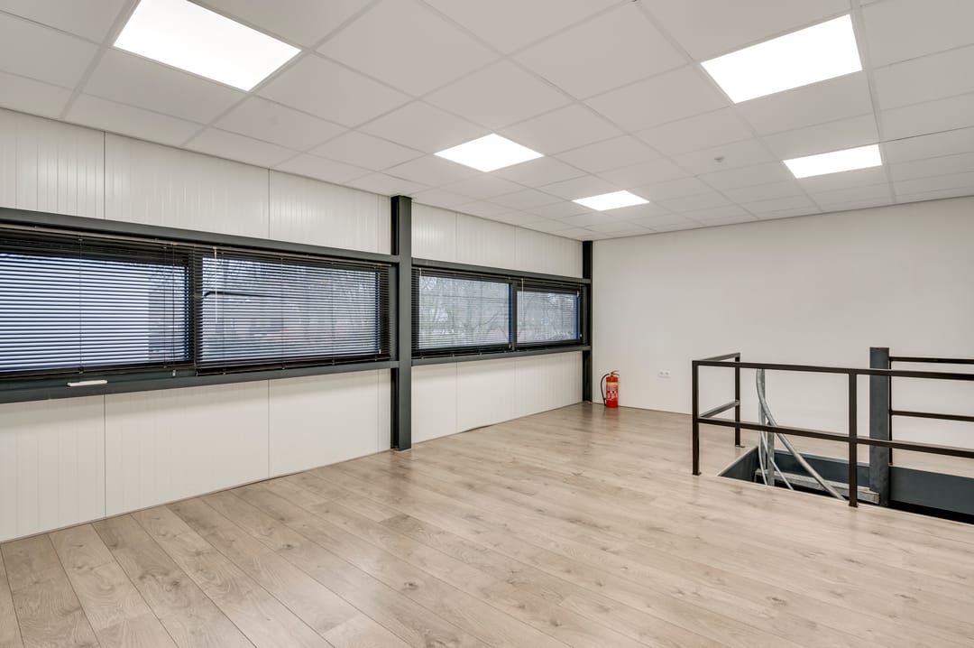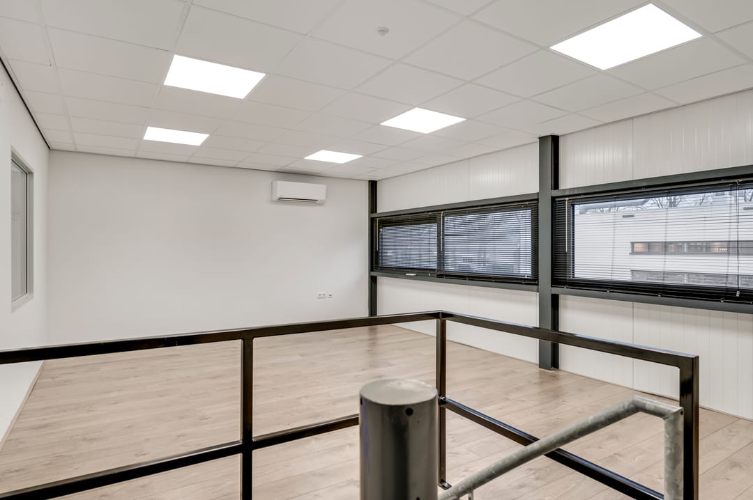 On the first floor, there is an office space of approximately 28 m², accessible via the fixed staircase in the left entrance. The office space is finished with a laminate floor and equipped with a suspended ceiling with LED lighting, air conditioning and ventilation. Insulated glass provides daylight entry and from the office there is a view of the business space. Data and power outlets are present.