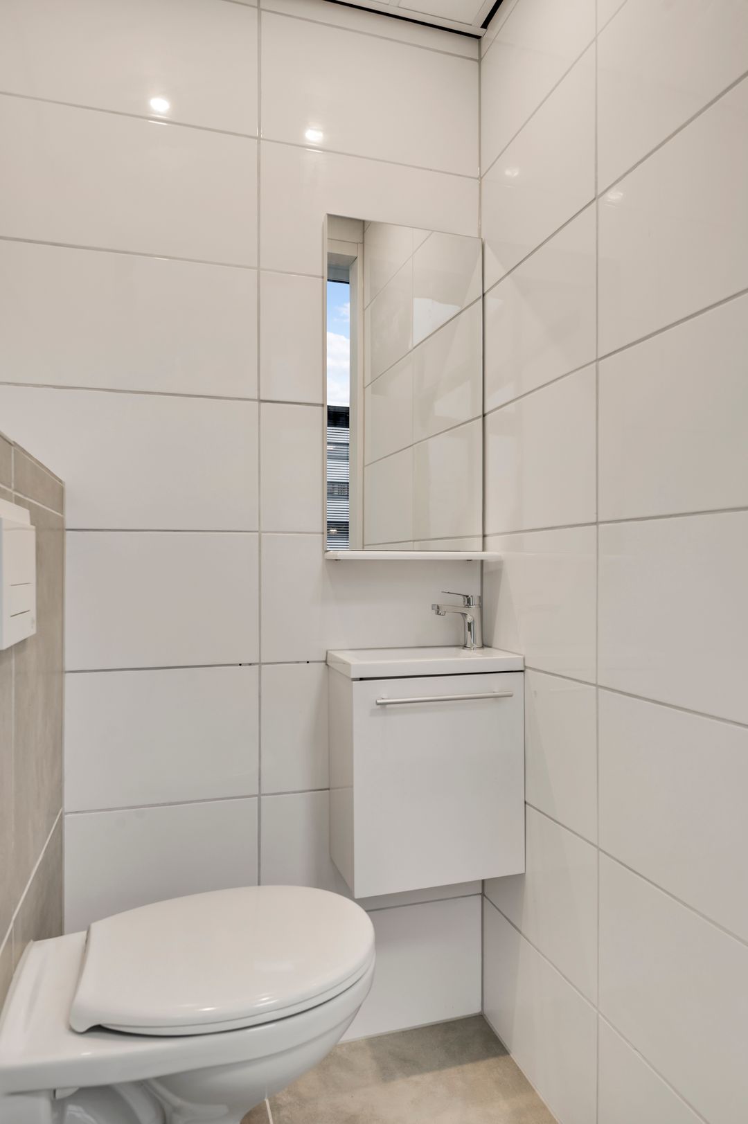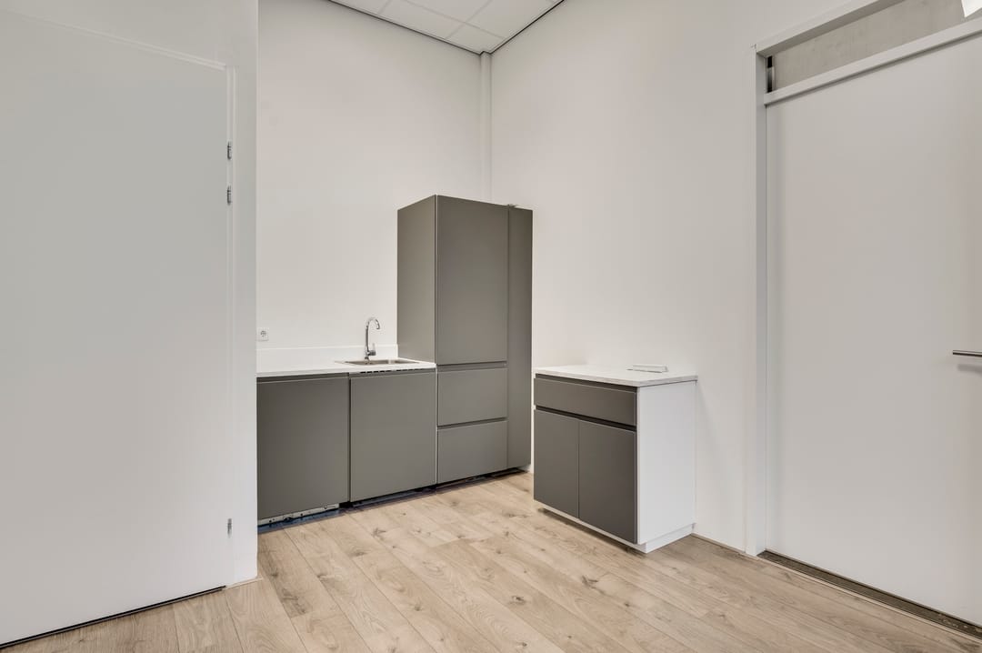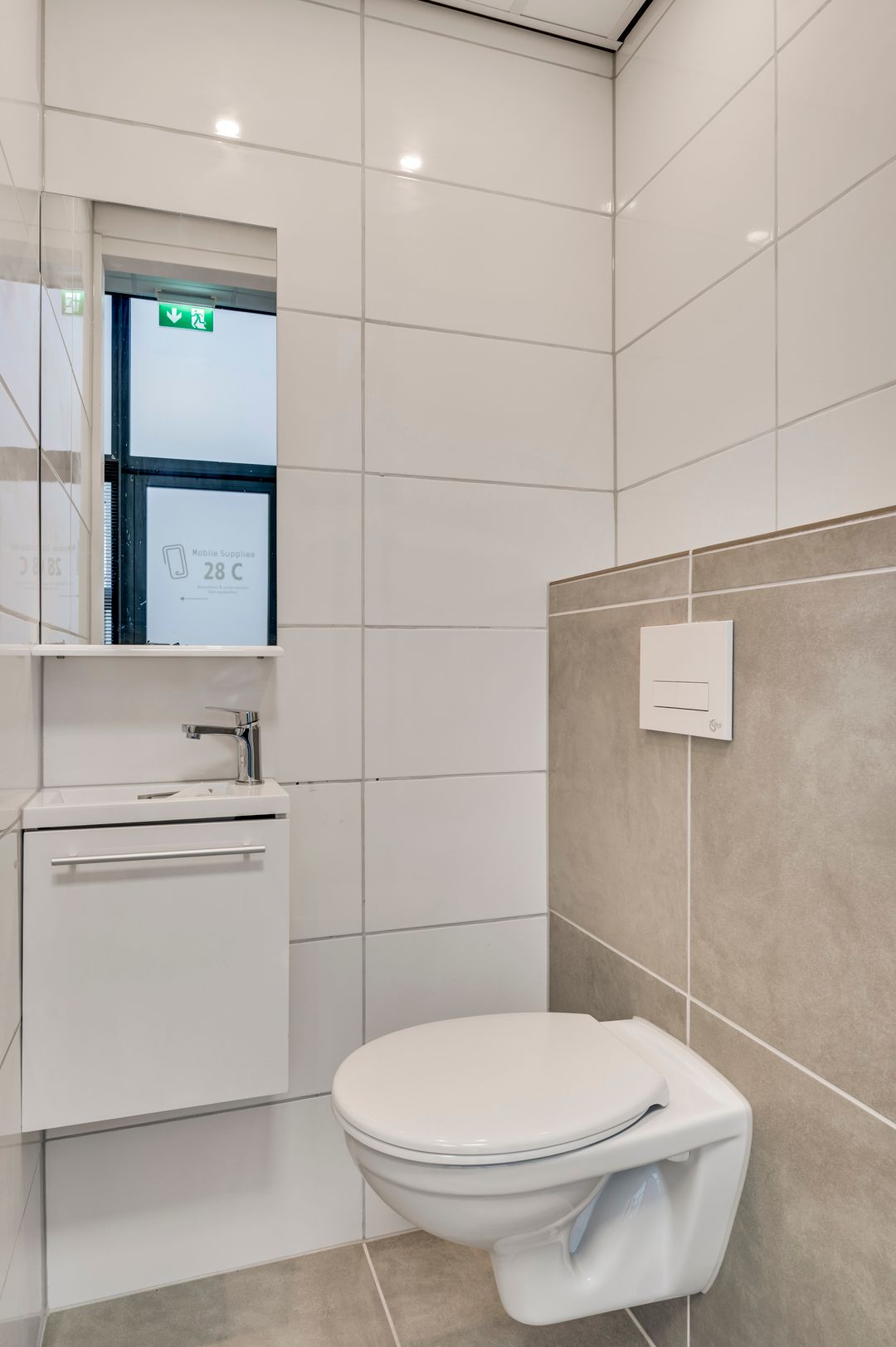 On the first floor, there is an office space of approximately 28 m², accessible via the fixed staircase in the left entrance. The office space is finished with a laminate floor and equipped with a suspended ceiling with LED lighting, air conditioning and ventilation. Insulated glass provides daylight entry and from the office there is a view of the business space. Data and power outlets are present.