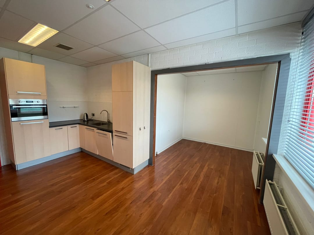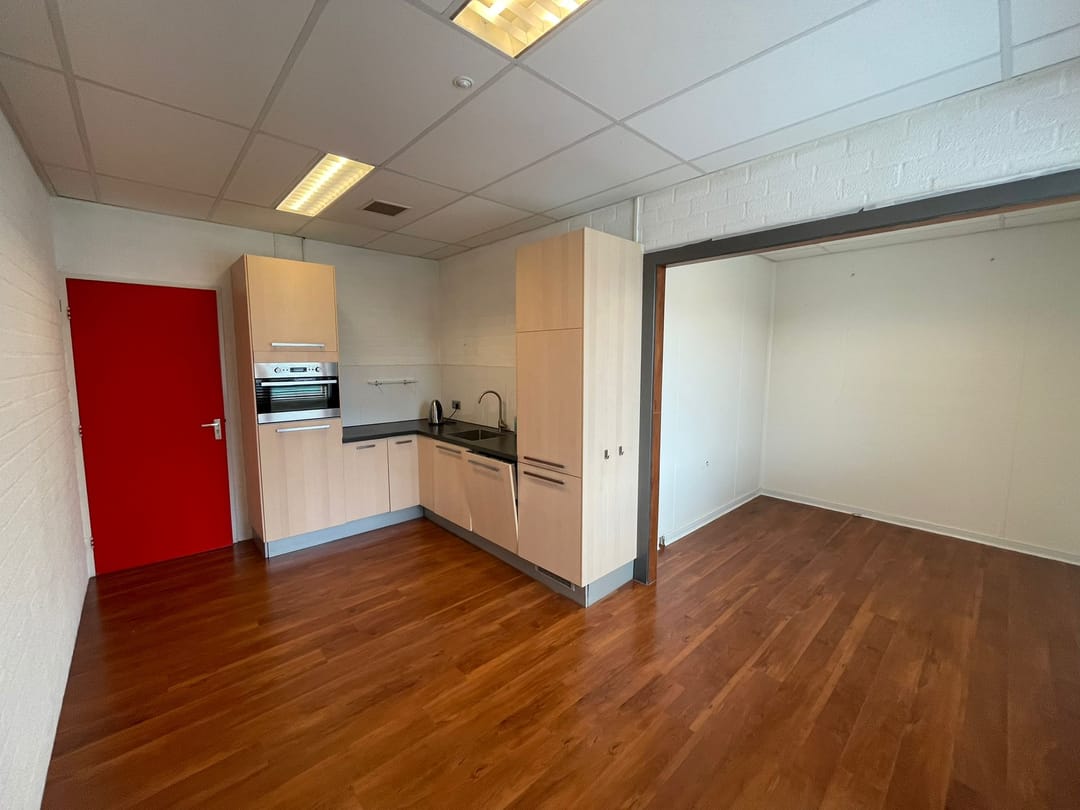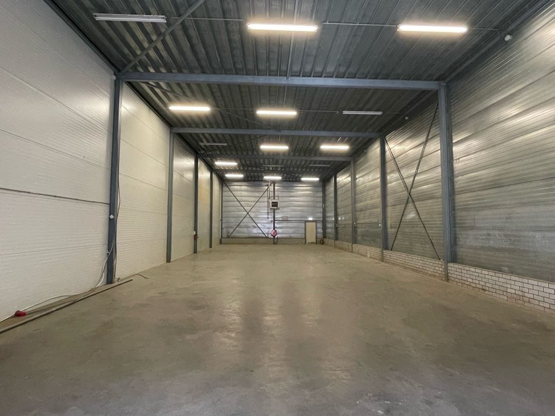 Multifunctionele BEDRIJFS-/OPSLAGRUIMTE van ca. 300 m² met een vrije hoogte van ca. 6.00 meter en ca. 50 m² aangrenzende kantoorruimte incl. keuken en toiletgroep. Het aantal m²'s kantoorruimte is uit te breiden.