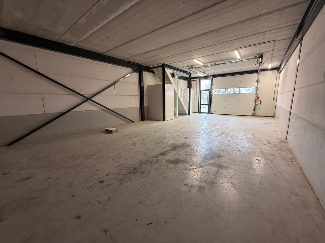 De bedrijfsunit beschikt op de begane grond over een vrije hoogte, elektrische overheaddeur, vloerverwarming en betonnen vloer.
