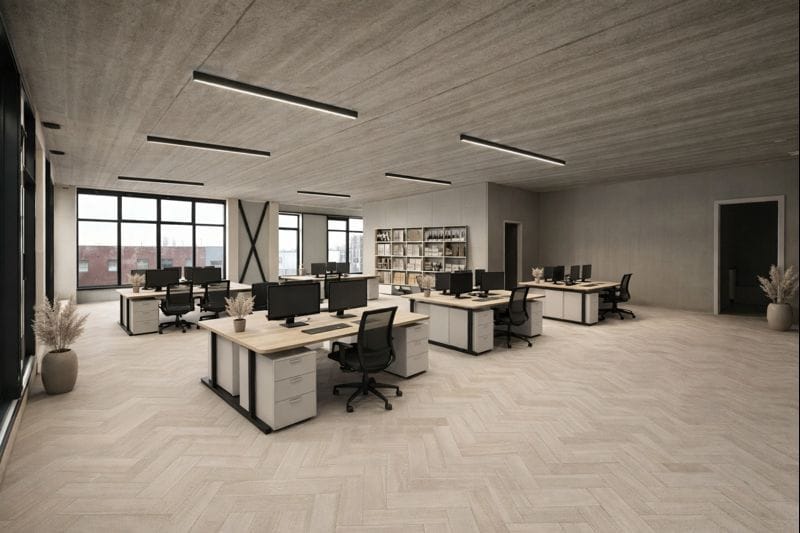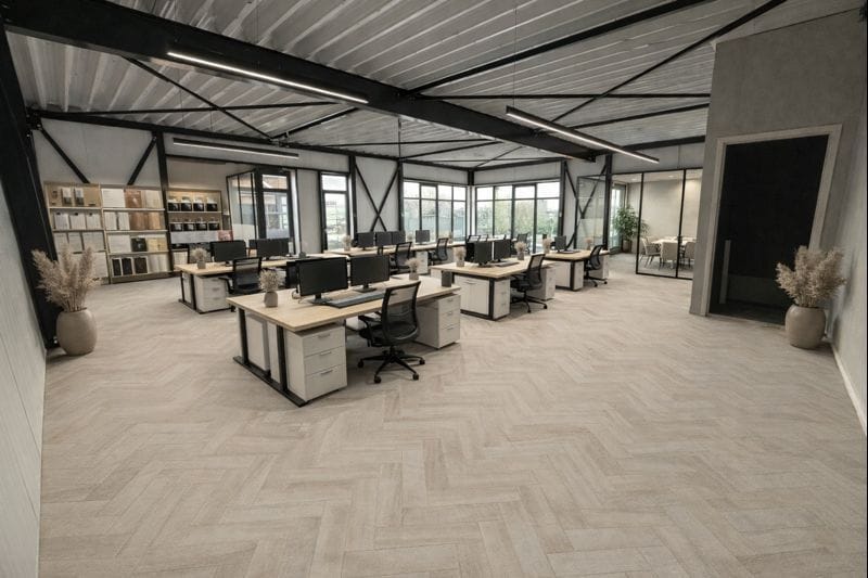 Betonvloer is geïsoleerd en monolithisch afgewerkt met een vloerbelasting van circa 1500 kg/m2.