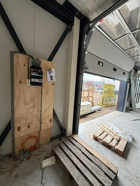 De bedrijfsunit is voorzien van een elektrisch bedienbare overheaddeur, een elektra-aansluiting met krachtstroom (3x 25 ampère) en een internetaansluiting.