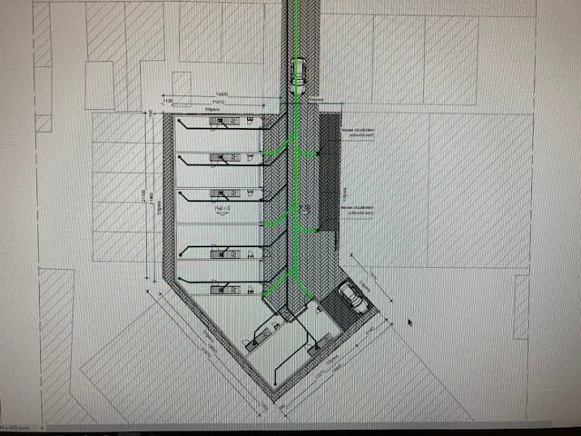 Project “7 – hof” was conceived on a business location bordered by existing business objects and some homes.