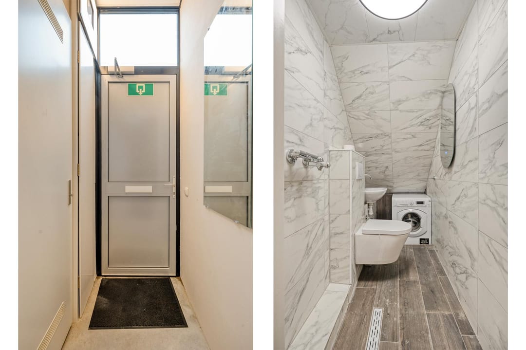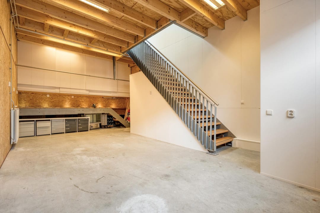 Deze direct te betrekken bedrijfsruimte is ideaal voor ondernemers die zonder verbouwing aan de slag willen. De begane grond beschikt over een ruime bedrijfshal met een vrije hoogte van 3,5 m, voorzien van een praktische overheaddeur en een aparte loopdeur, wat zorgt voor optimale toegankelijkheid. In de hal zijn een vaste kastenwand en brede werkbank aanwezig, waardoor de ruimte efficiënt kan worden ingericht. Onder de trap bevindt zich een nette toiletruimte met douche, wastafel en een wasmachine, een praktische extra voorziening voor u en uw medewerkers.