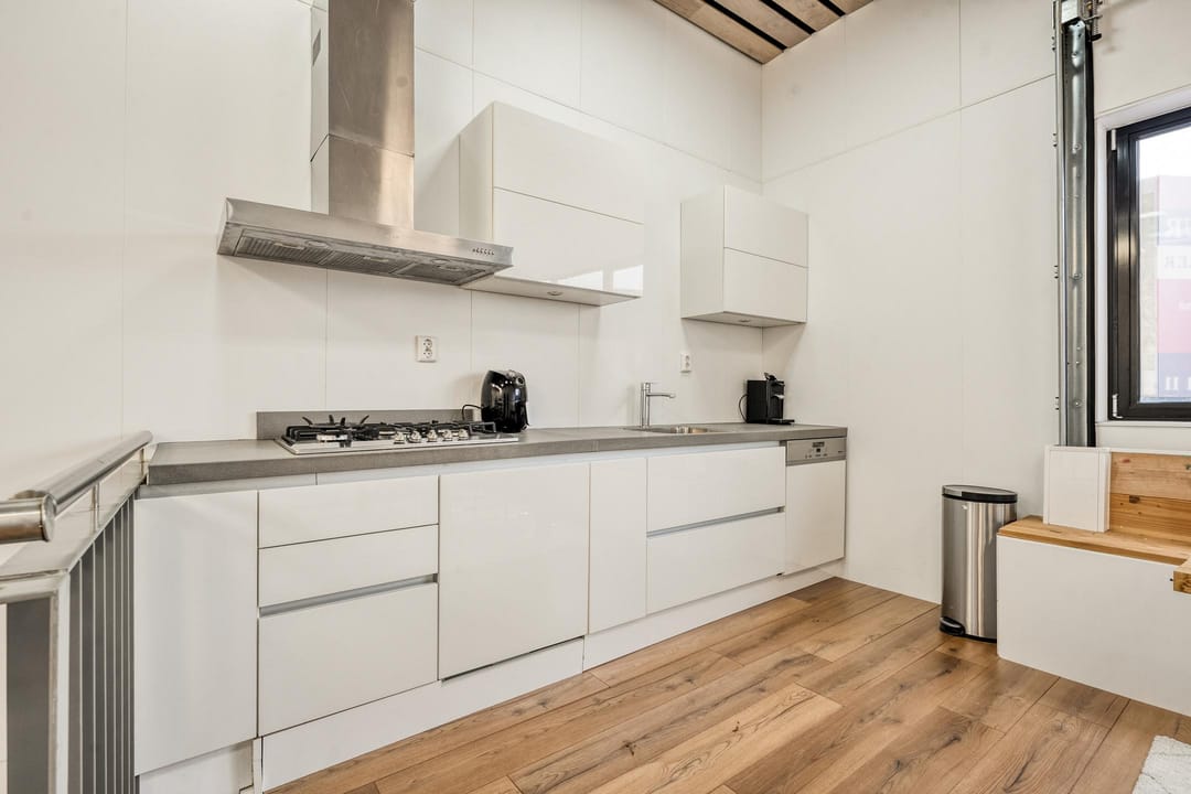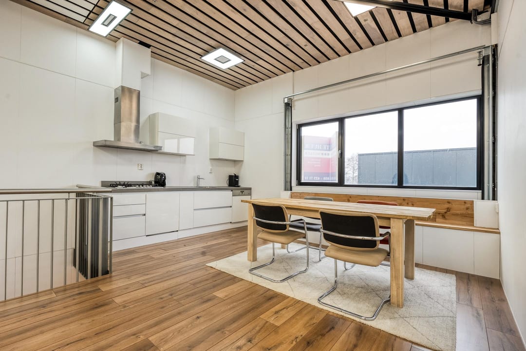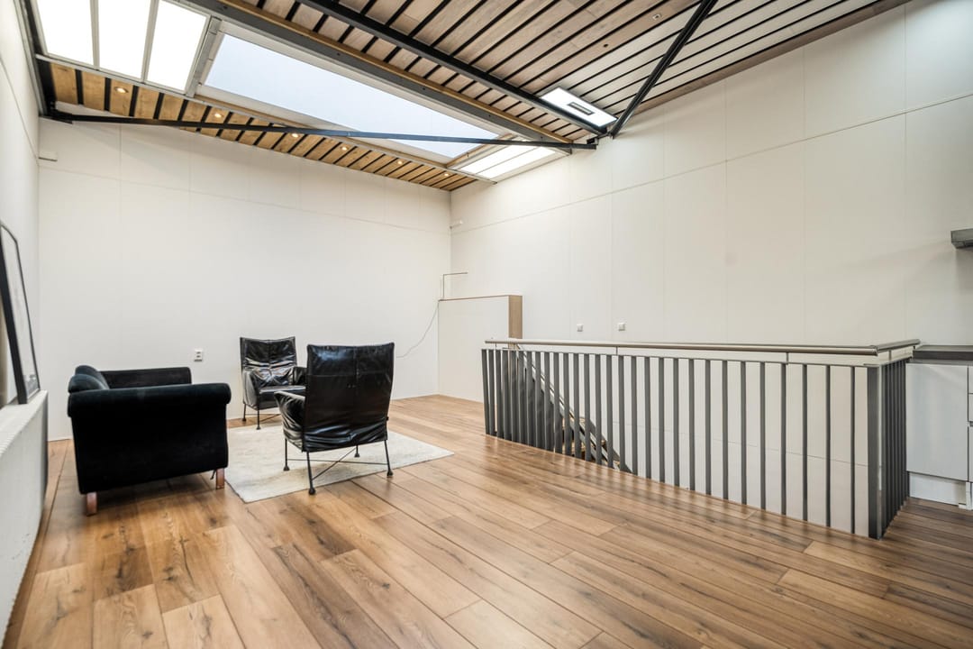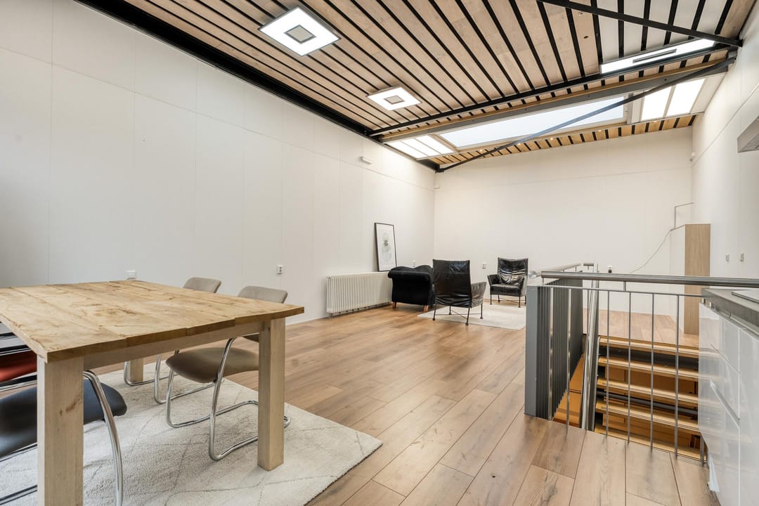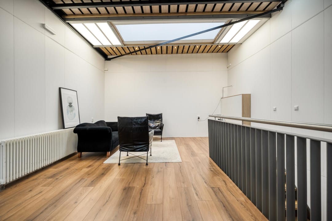 De verdieping met een vrije hoogte van 3.0 m is volledig ingericht als representatieve kantoorruimte. Dankzij de lichtstraat geniet u hier van aangenaam daglicht, wat bijdraagt aan een prettig werkklimaat. De ruimte is compleet afgewerkt met strakke witte wanden, een verzorgd plafond, sfeervolle LED-verlichting, spotjes en lichtbalken en een mooie houten vloer. De witglanzende pantry, met vaatwasser en hardstenen werkblad, maakt het geheel compleet en biedt alle comfort voor dagelijks gebruik.