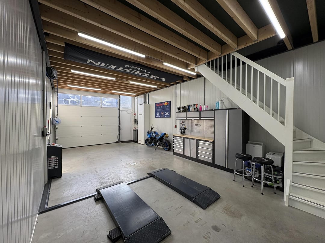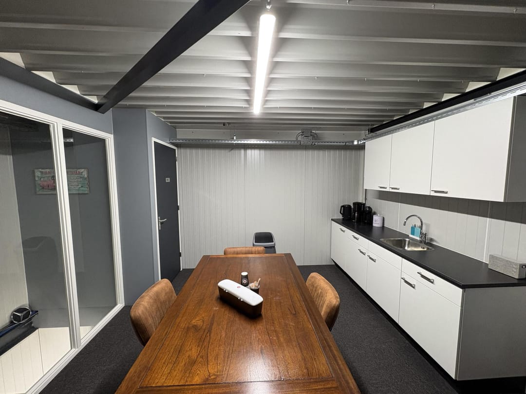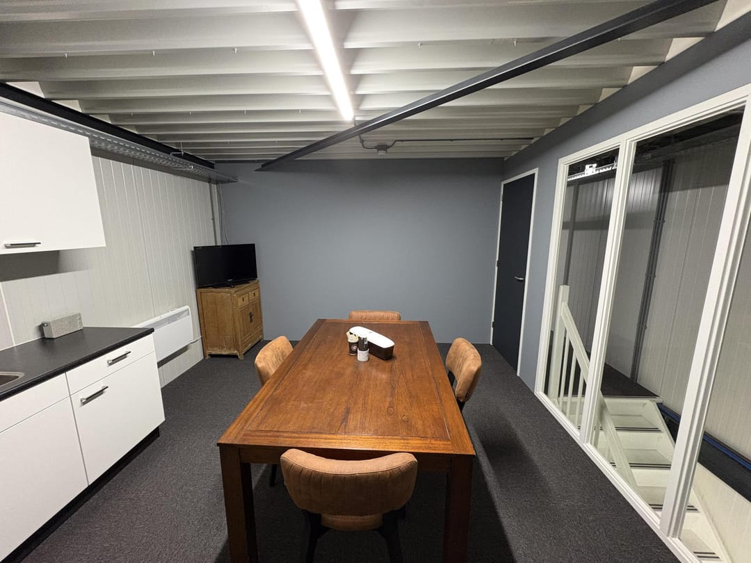 De begane grond beschikt over een ruime bedrijfsruimte van 50 m² met een elektrische overheaddeur, perfect voor werkplaats, opslag of logistieke activiteiten. Op de verdieping bevinden zich een kantine en opslagruimte, inclusief pantry, toilet, radiatoren en energiezuinige LED-verlichting. De unit is voorbereid voor airconditioning en beschikt over 3x 25 Ampère elektriciteit, geschikt voor diverse bedrijfsactiviteiten. Tot slot is de unit uitgerust met camerabewaking.