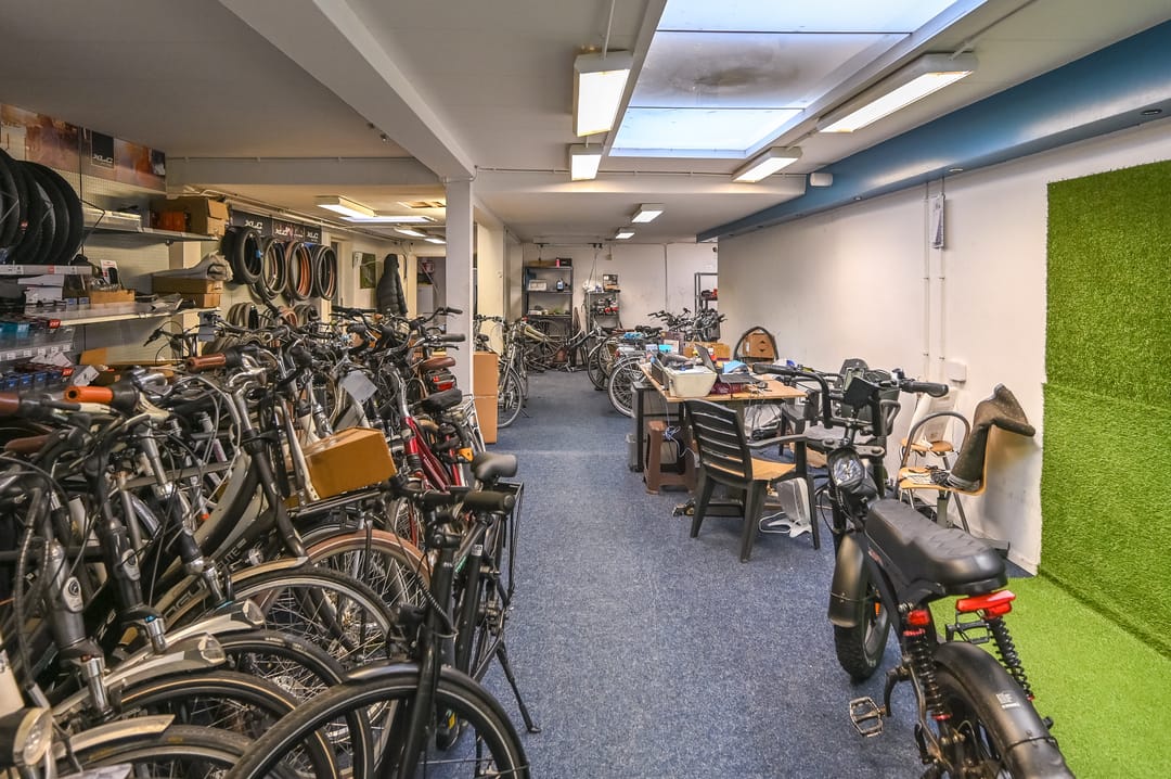 Deze representatieve winkelruimte met ongeveer 295 m² Bruto vloeroppervlakte is in gebruik als fietsenwinkel van circa 149 m² met magazijn/reparatieruimte van circa 115 m² die via de zijkant is te bereiken. Het pand heeft een frontbreedte van circa 5,75.