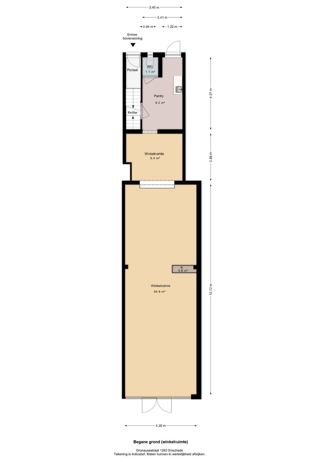 - Winkelruimte (incl. werk-/bergruimte en sanitaire voorzieningen) van ca. 75 m² VVO.