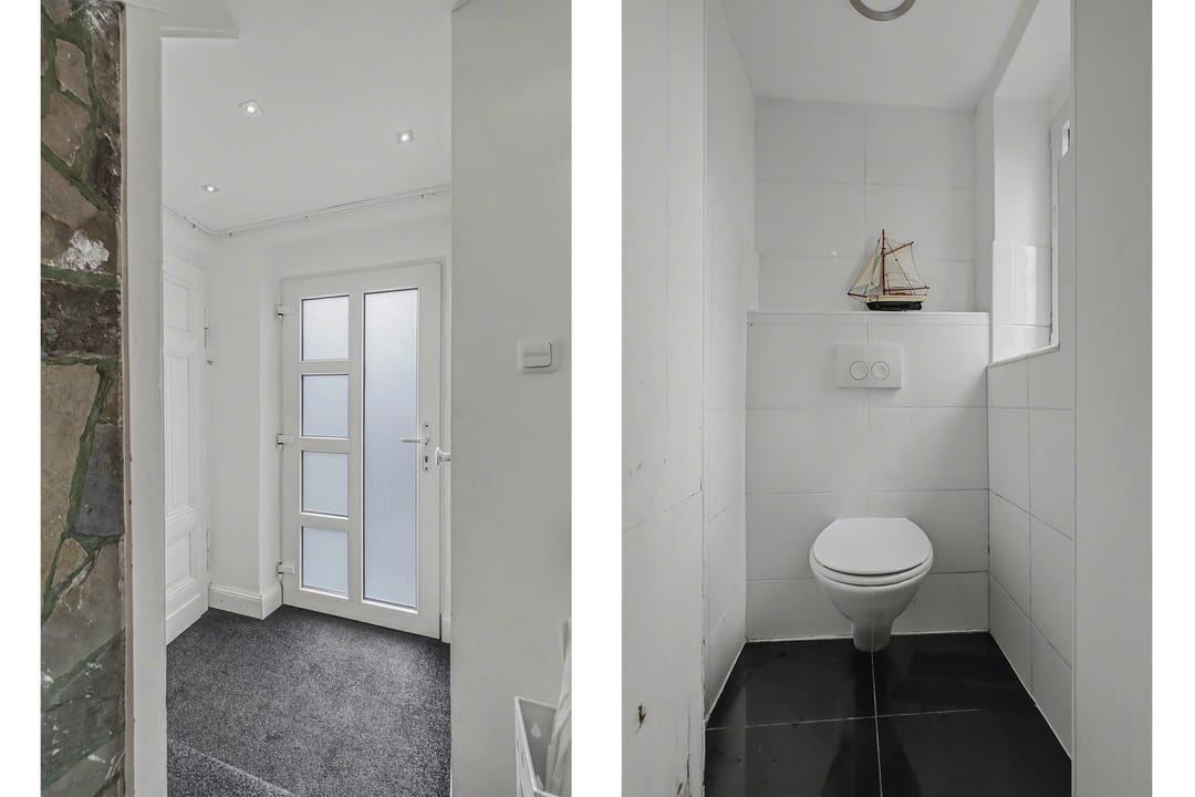 Riante ontvangsthal met vernieuwde meterkast en trapopgang