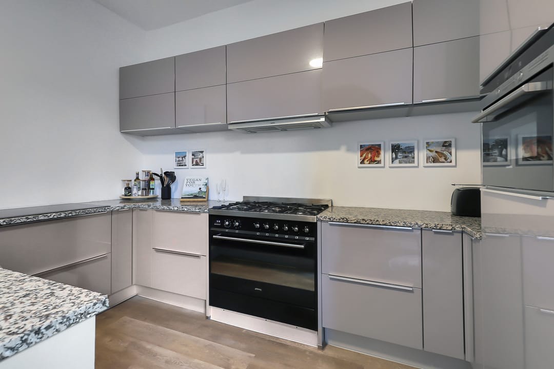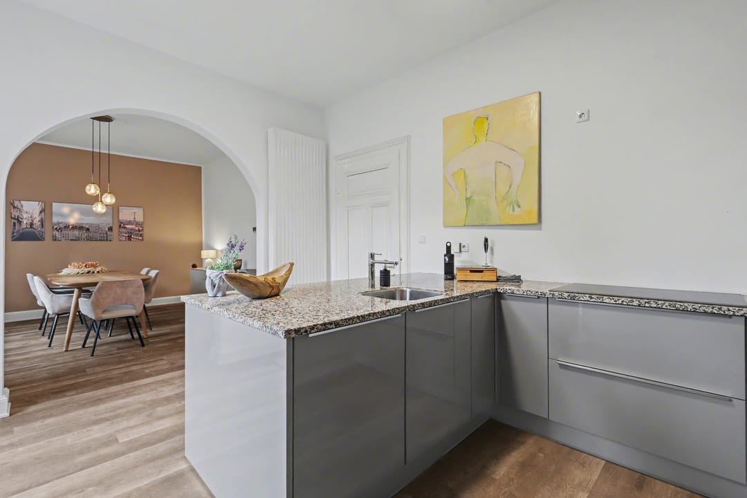 Keuken II: ca. 3,74 x 3,38 m, voorzien van inductiekookplaat, RVS afzuigkap, vaatwasser, koelkast, stoomoven en combi-oven.