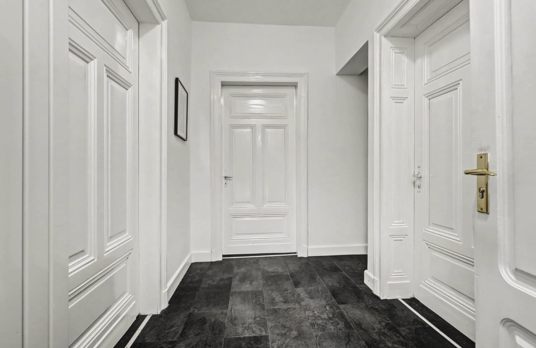 Living I: ca. 5,79 x 4,41 m, voorzien van laminaattegelvloer, prachtige kroonlijsten en een indrukwekkende plafondhoogte van circa 3,62 meter.