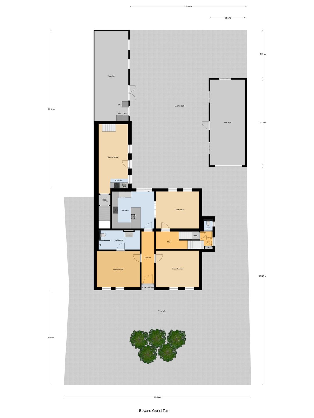 Garage: ca. 7,08 x 3,57 m, voorzien van dubbele houten poorten