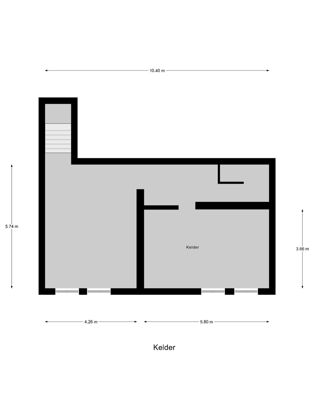 Begane grond: kamer ca. 6,54 x 2,96 m met toegang tot het souterrain