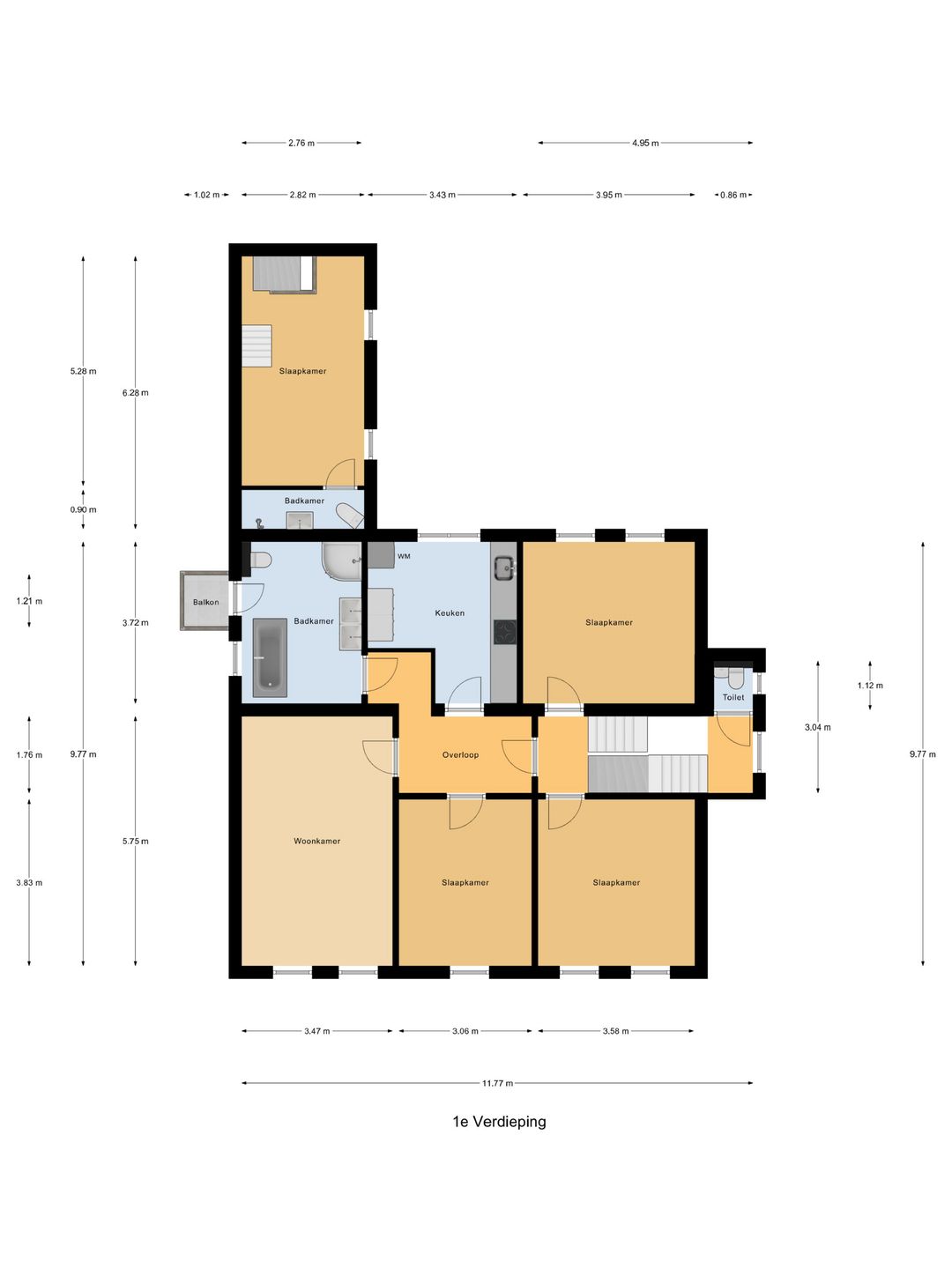 Eetkamer: ca. 5,20 x 3,82 m, met open verbinding met de leefkeuken.
