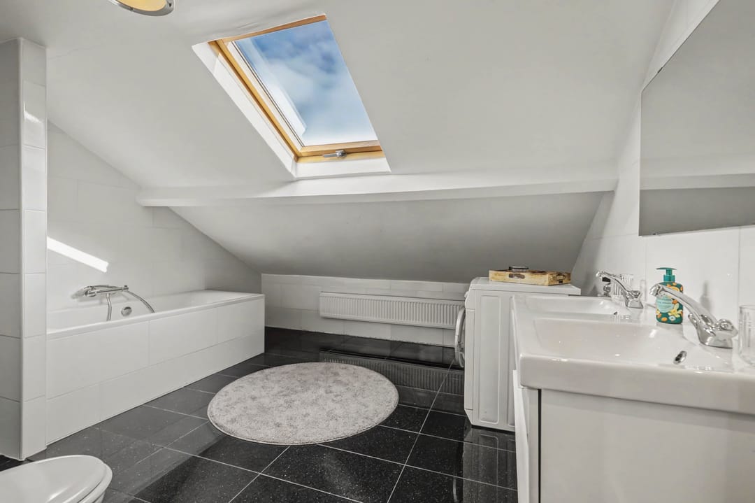 Badkamer II: ca. 3,62 x 3,59 m, voorzien van ligbad, inloopdouche, zwevend toilet, dubbele wastafel met meubel, inbouwspots en dakraam.
