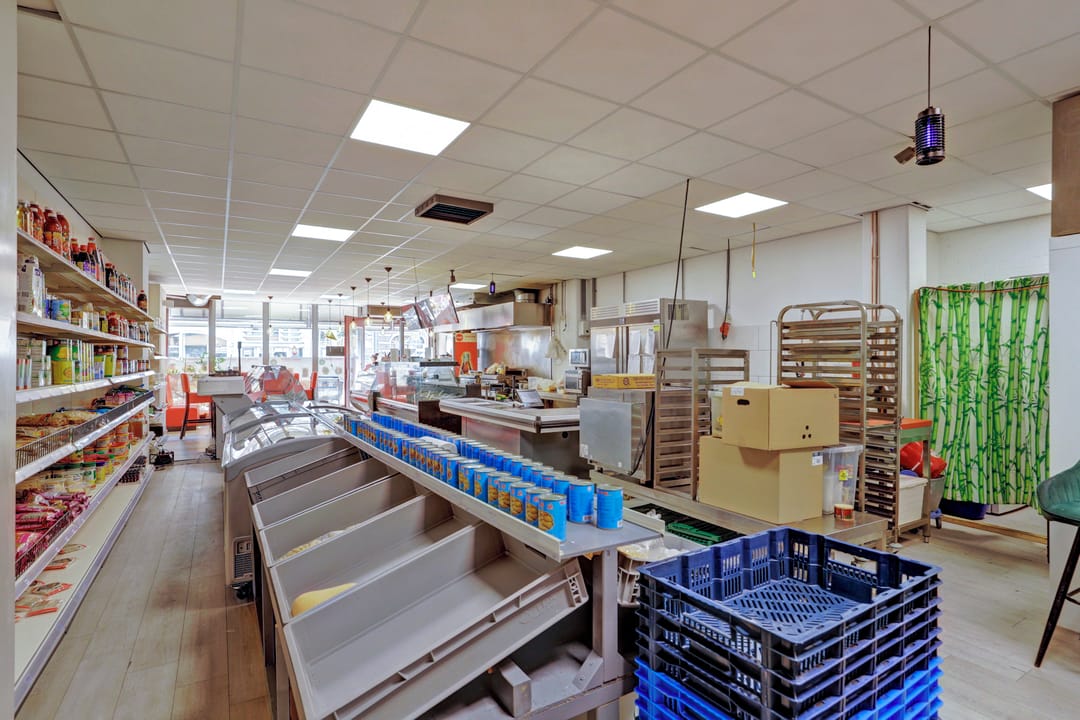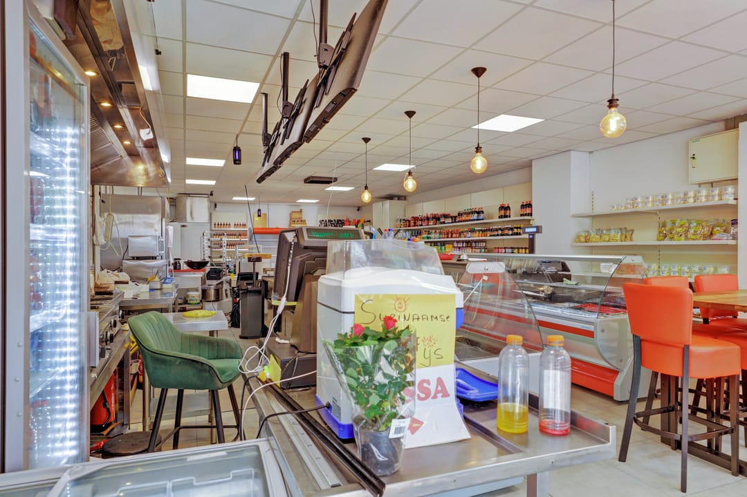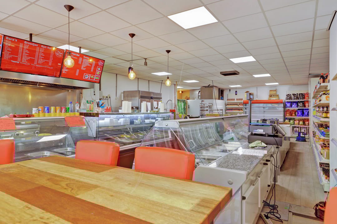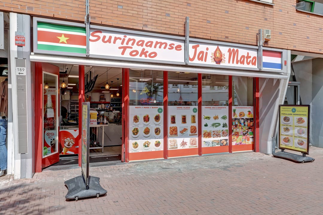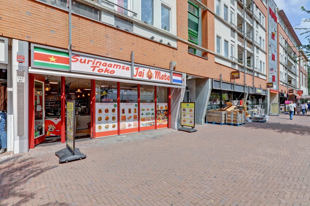 De winkelruimte bevindt zich op de begane grond en heeft een bruto vloeroppervlak van circa 129 m² (circa 104 m² VVO). De indeling is efficiënt en biedt ruimte voor uiteenlopende winkel- of dienstverlenende concepten. De ruimte is netjes afgewerkt en wordt momenteel gebruikt als een Surinaamse toko met een breed assortiment levensmiddelen, snacks en producten. Aan de achterzijde bevinden zich een pantry en een toilet.