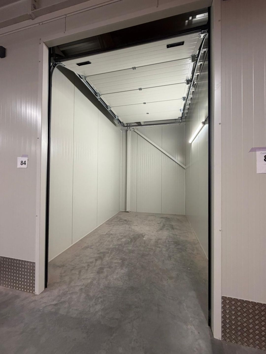De garagebox bevindt zich op de 1e etage en is via de brede hellingbaan eenvoudig bereikbaar, waardoor voertuigen en goederen direct tot aan de unit kunnen worden gebracht.