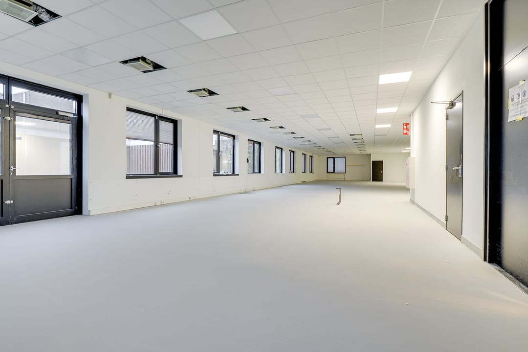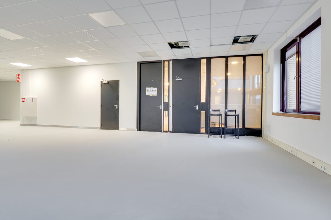 De kantoorruimte op de eerste verdieping wordt zeer compleet opgeleverd met onder andere pvc vloeren, systeemplafond voorzien van verlichtingsarmaturen, gesausde wanden, pantry, binnen zonwering, luchtbehandeling en kabelgoten. Daarnaast beschikt de ruimte over een hoogwaardig inbouwpakket met grotendeels glazen binnenwanden. Hierdoor beschikt de ruimte over een diverse combinatie van werk- en vergaderruimten.