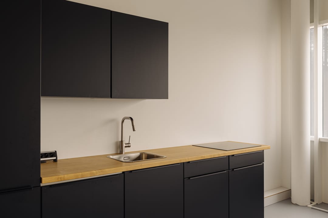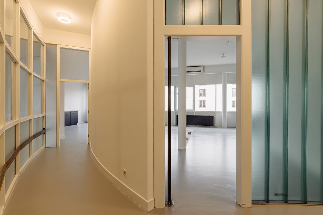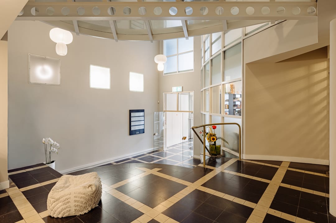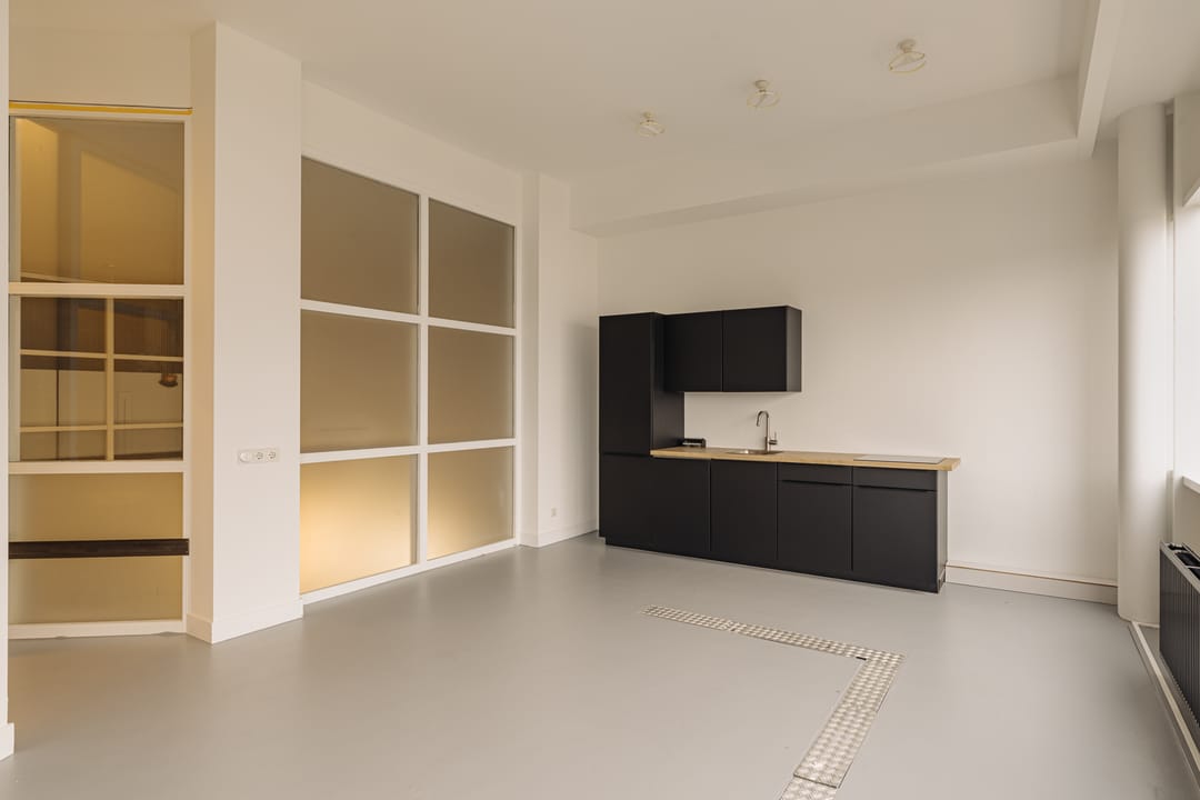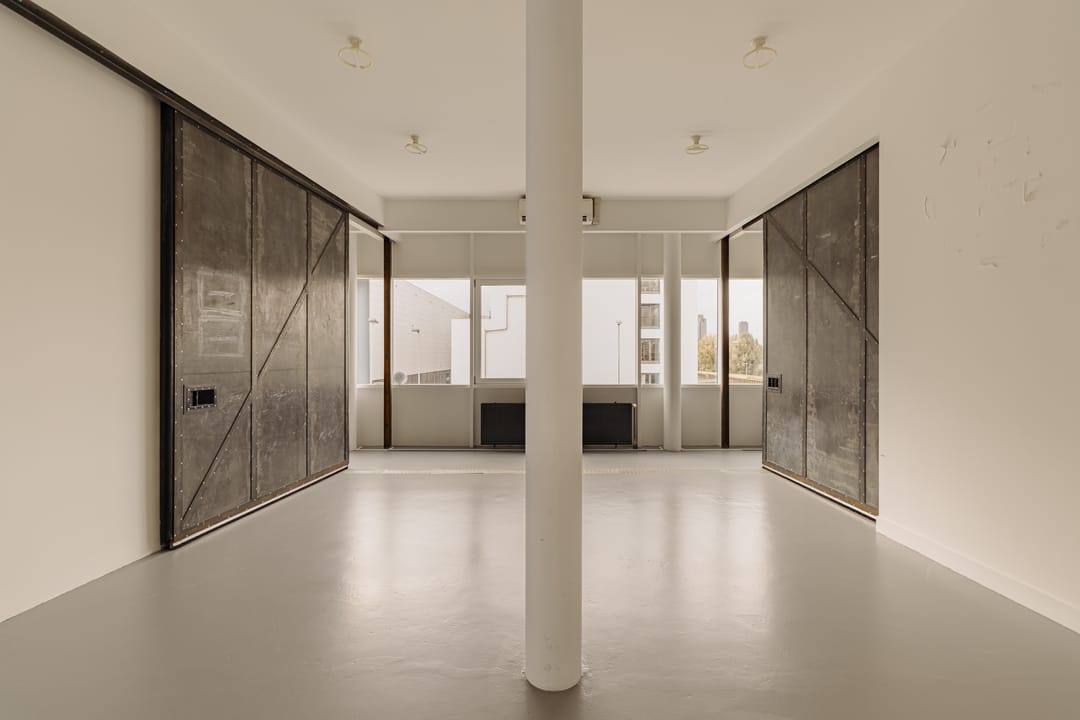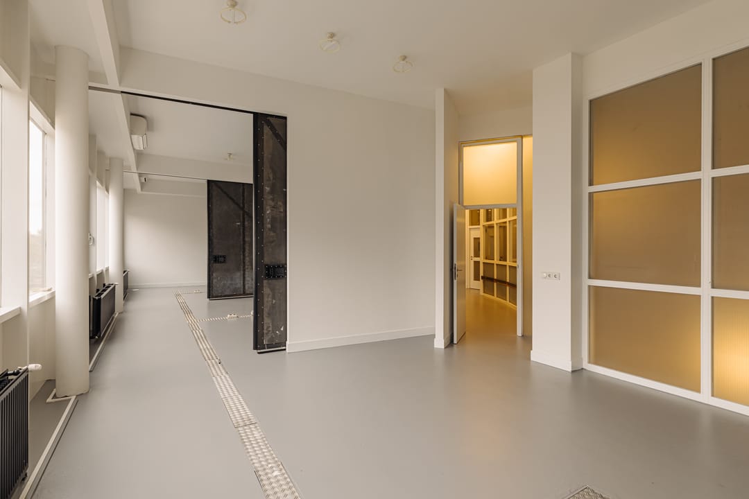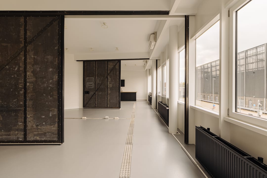De ruimte ademt een robuuste stijl die naadloos is gemoderniseerd met een eigentijdse pantry. Door de lichte, open ruimte en het uitzicht over het water ontstaat een inspirerende sfeer. Met stijlvolle, industriële schuifdeuren kan de verdieping worden opgedeeld in drie afzonderlijke ruimten, waardoor een flexibele werkomgeving ontstaat die past bij iedere manier van werken.
