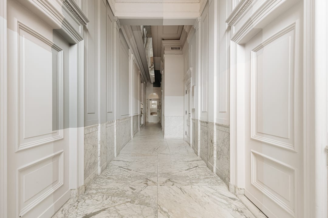 Het monumentale kantoorgebouw “Isaac” is gelegen aan de Herengracht, om de hoek van de Raadhuisstraat, in het centrum van Amsterdam. Aan de voorzijde van het gebouw is op de vierde en vijfde verdieping een kantoorruimte met uitzicht op de gracht beschikbaar. Deze unit van circa 200 m² wordt turn-key opgeleverd en bestaat uit een kantoorruimte, spreekkamer met bibliotheek op de vierde verdieping en een kantoorruimte met keuken op de vijfde verdieping. De kantoorruimte op de vierde verdieping kent een aanzienlijke vrije hoogte met indrukwekkende zwart geverfde balkenplafond voorzien van design verlichting. Tevens is er voldoende lichtinval dankzij de grote ramen aan de zijkant en de achterkant. Op de vijfde en tevens bovenste verdieping is het wit geverfde balkenplafond zichtbaar, samen met de gestucte wanden en visgraat vloerafwerking is het een representatief en licht geheel.