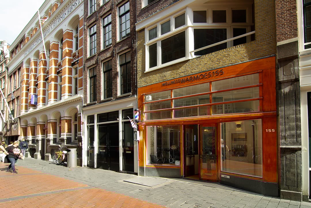 Warmoesstraat 155 is located in the heart of Amsterdam's city centre, right in the middle of the bustling old town. Amsterdam Centraal Station is within easy walking distance — roughly 8 to 10 minutes on foot, or a short ride on several tram and bus lines that stop nearby.