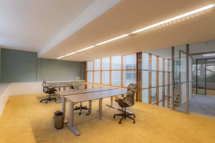 The office spaces are delivered turn-key: fully furnished and ready for immediate use.