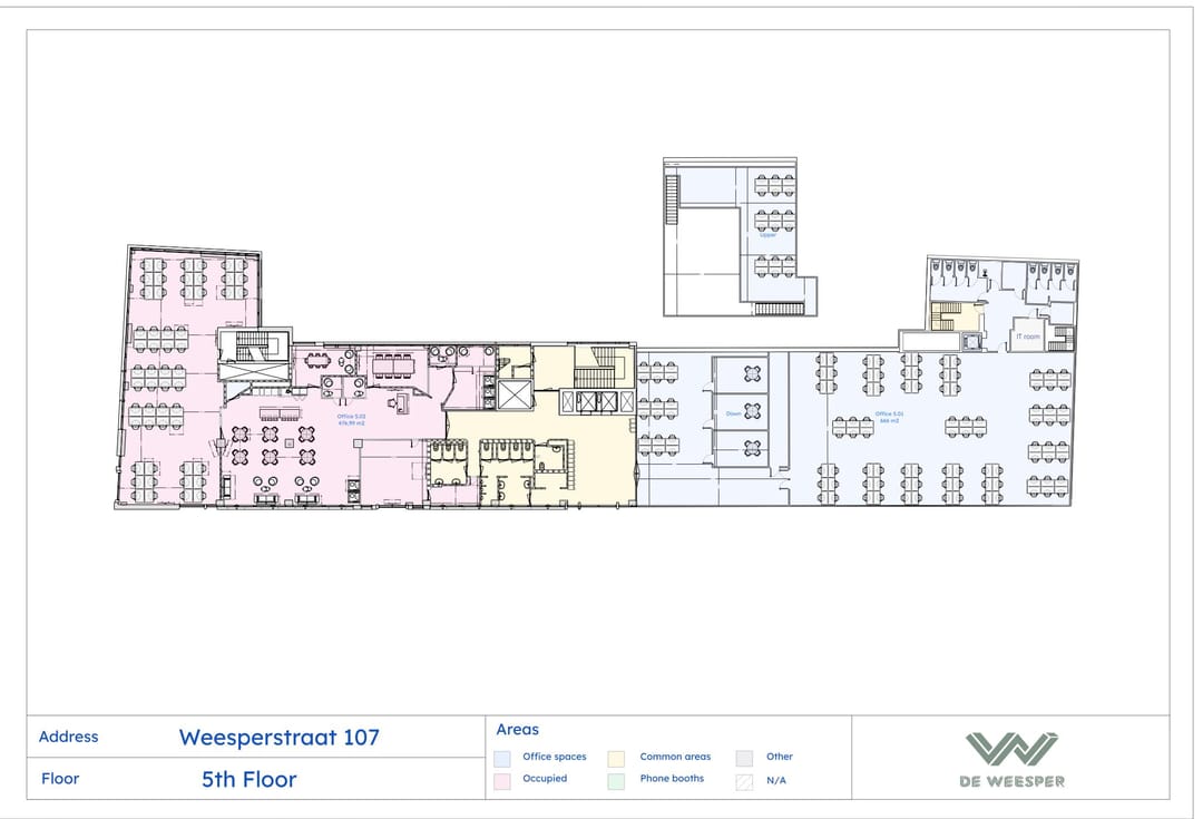 On the fifth floor of the high-quality office building De Weesper, a spacious and fully self-contained office floor of approximately 1,080 sq m (LFA) is available. This office space is offered as a whole and is one of the last remaining available units within the building.