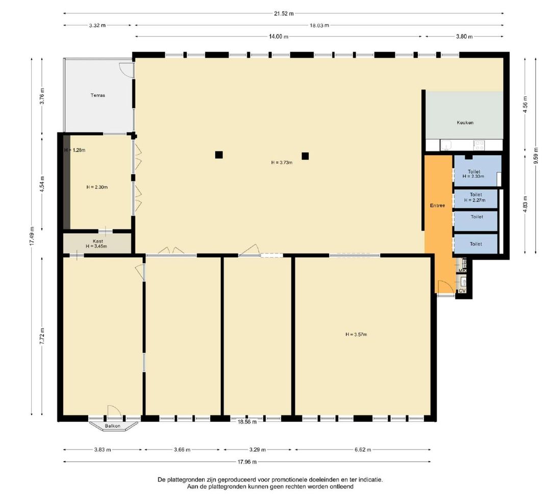 Voor de verhuur komt ca. 1.009 m² v.v.o. beschikbaar, als volgt verdeeld: