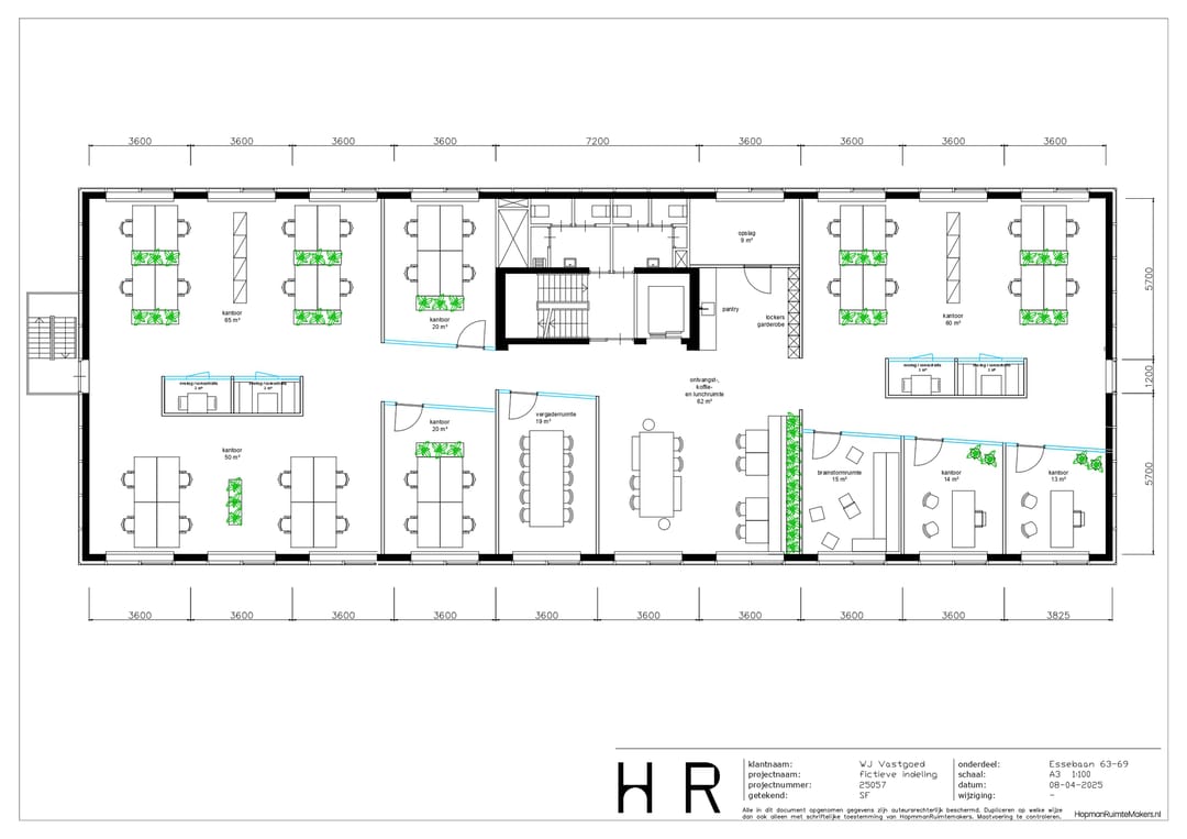 • Essebaan 63 wordt in nader overleg opgeleverd, momenteel voorzien van o.a. transparante scheidingswanden en pantry.
