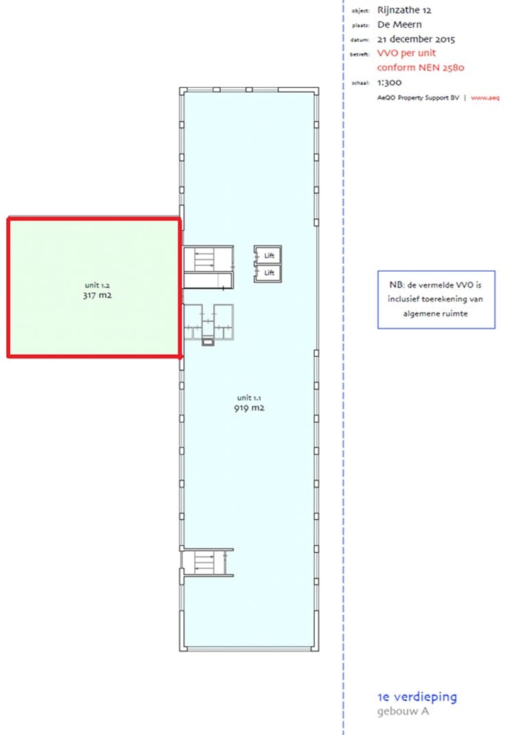 1e verdieping: circa 317,0 m² v.v.o.