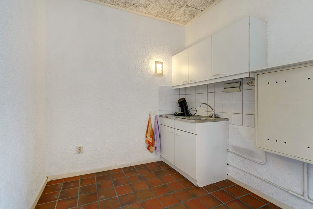 Kantine van circa 32 m² met vaste kast en kitchenette.