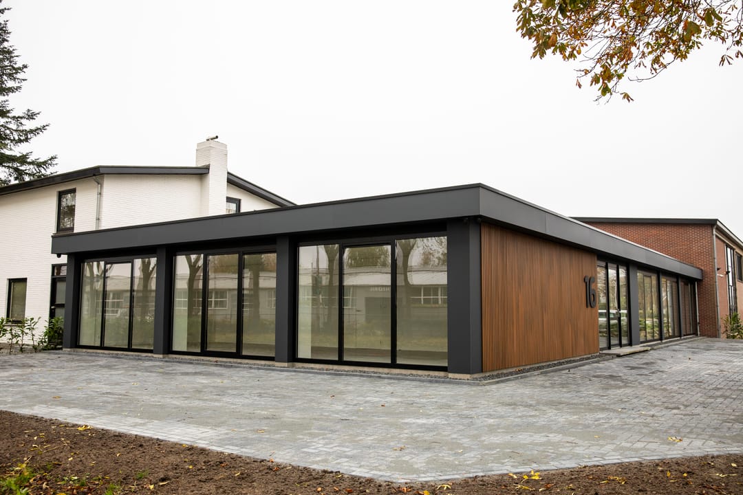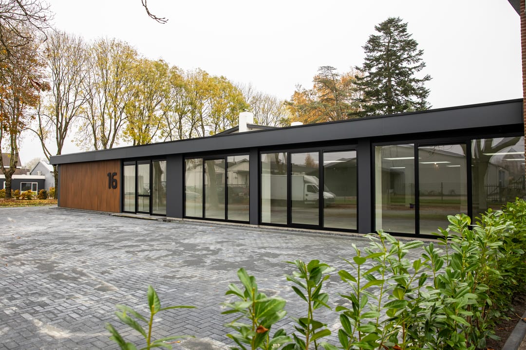 Te huur: op een unieke locatie geheel vernieuwd bedrijfspand met showroom en kantoorruimte.