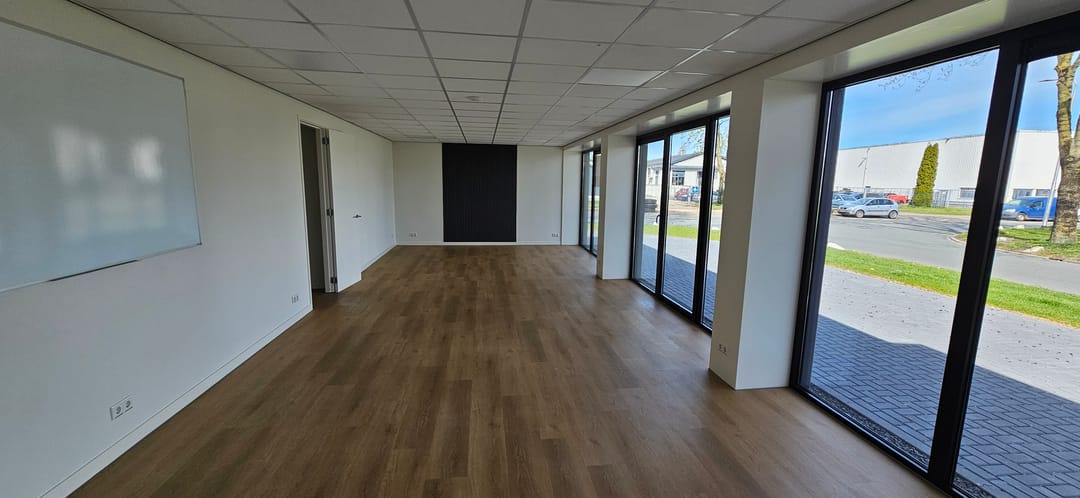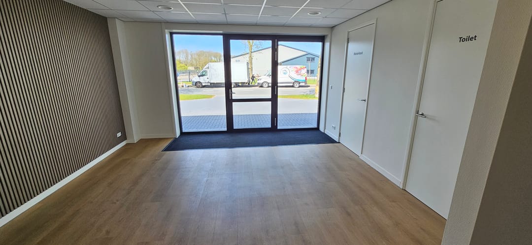 - 1 bedrijfsruimte / showroom van ca. 54 m2 met aansluitend entree, garderobe, toiletgroep, pantry, opslag en technische ruimte in totaal ca. 99 m2 incl. de bedrijfsruimte.