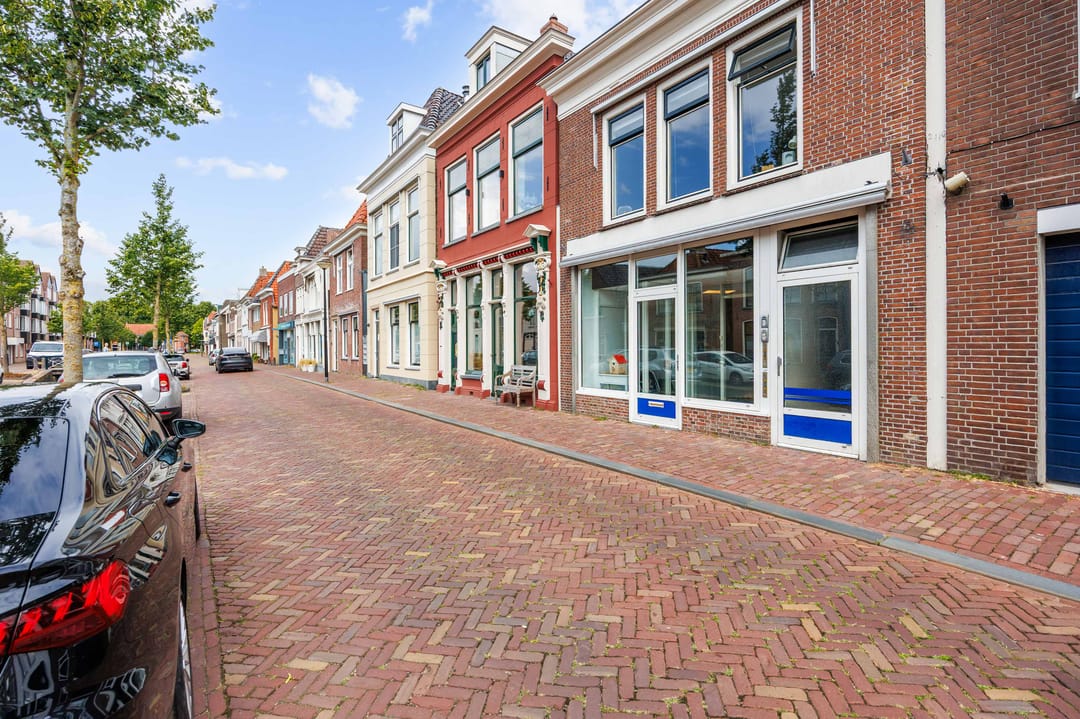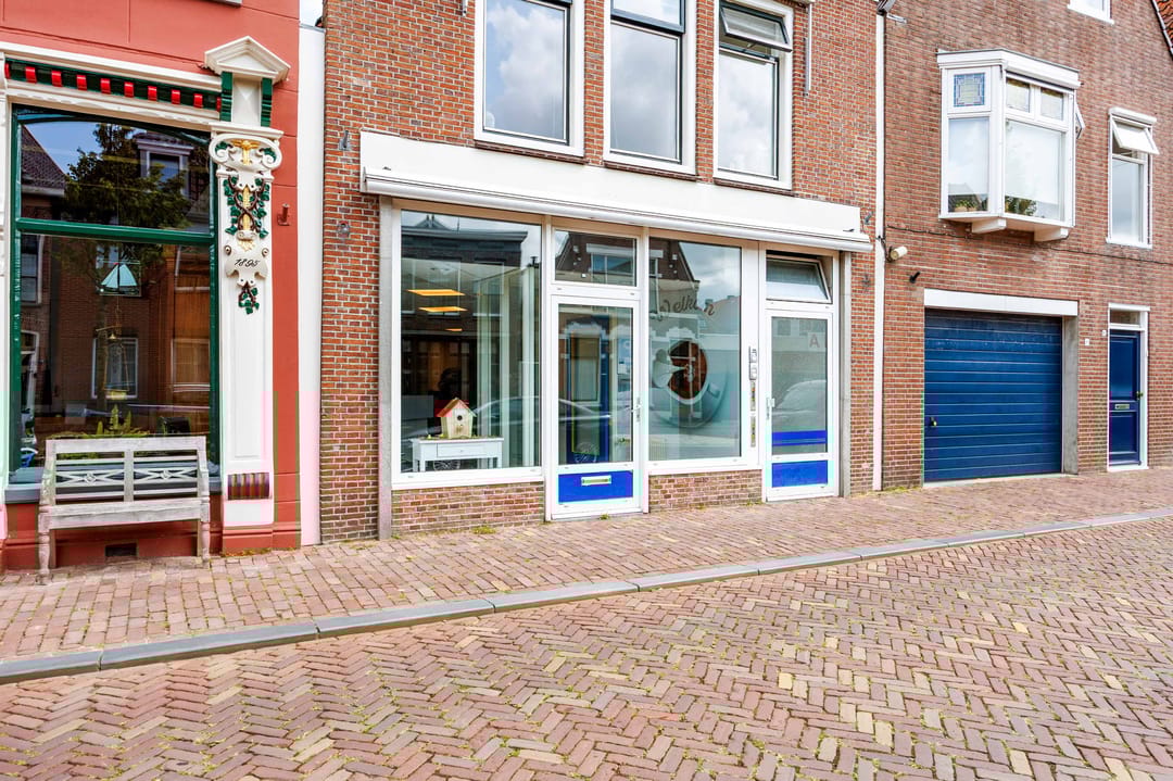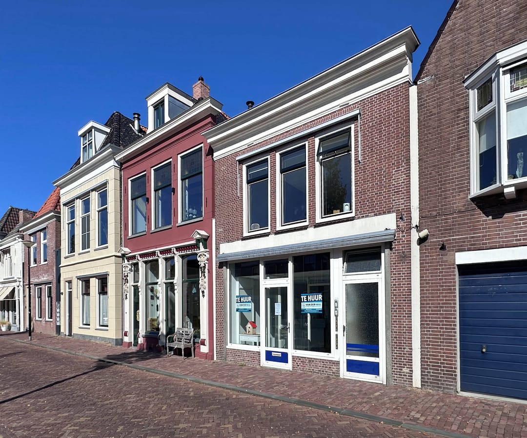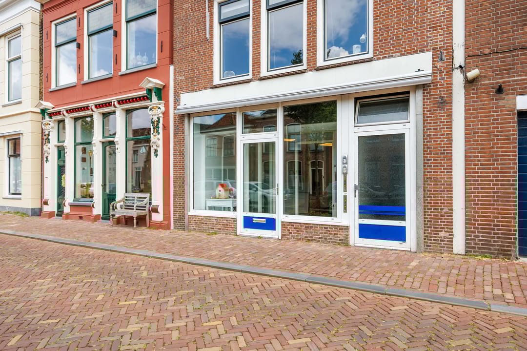 In het stadcentrum van Franeker, aan de gracht gelegen, ligt deze verzorgde en royale kantoor/ praktijkruimte met ontvangstruimte en balie, 3 kantoren, keuken annex kantine en magazijn. Belendende panden zijn vnl. kantoor- en praktijkruimtes en woningen. Parkeren (betaald of met vergunning) kan aan de gracht. Op 5 min. loopafstand is een groot parkeerterrein (gratis). BVO: 129 m²..