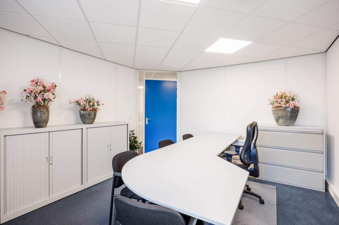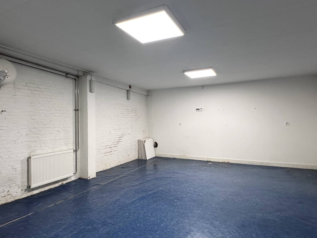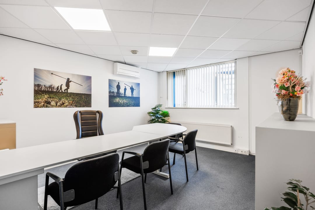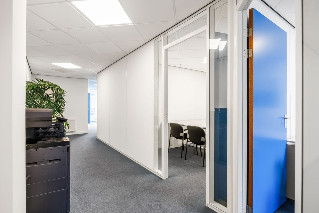- kunststof pui met grote ramen; betonvloeren; voorzien van systeemplafonds met verlichting, verwarming/warm water middels CV installatie, airconditioning;