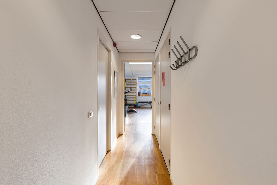 All rooms are easily accessible via the entrance. The floor has several spacious rooms that can be used flexibly as office space, practice rooms, classrooms, meeting rooms, or support facilities. Thanks to the practical layout and straight walls, the spaces can be furnished efficiently.