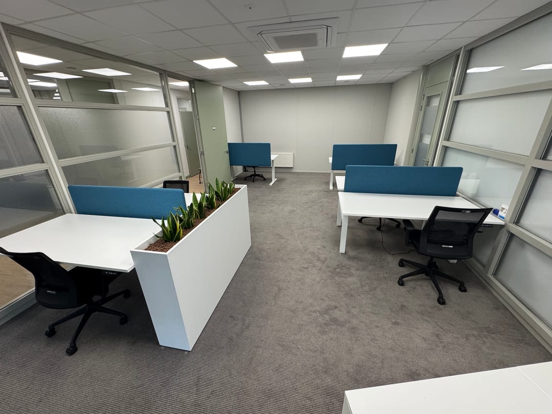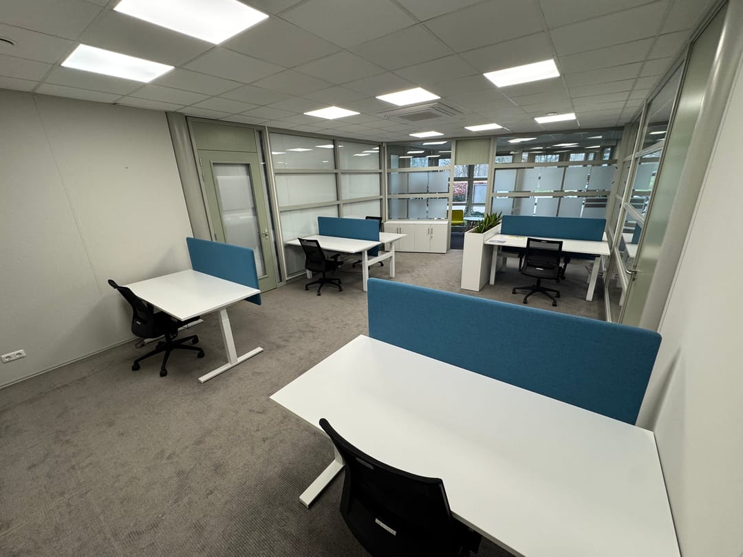 Wij bieden de volledige ruimte (6 werkplekken) aan, maar het is ook mogelijk om per werkplek de ruimte te huren of meerdere werkplekken te combineren.