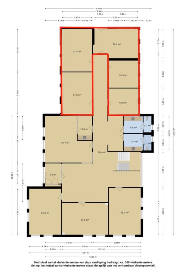 De totale beschikbare oppervlakte bedraagt circa 90 m² kantoorruimte, verdeeld over;