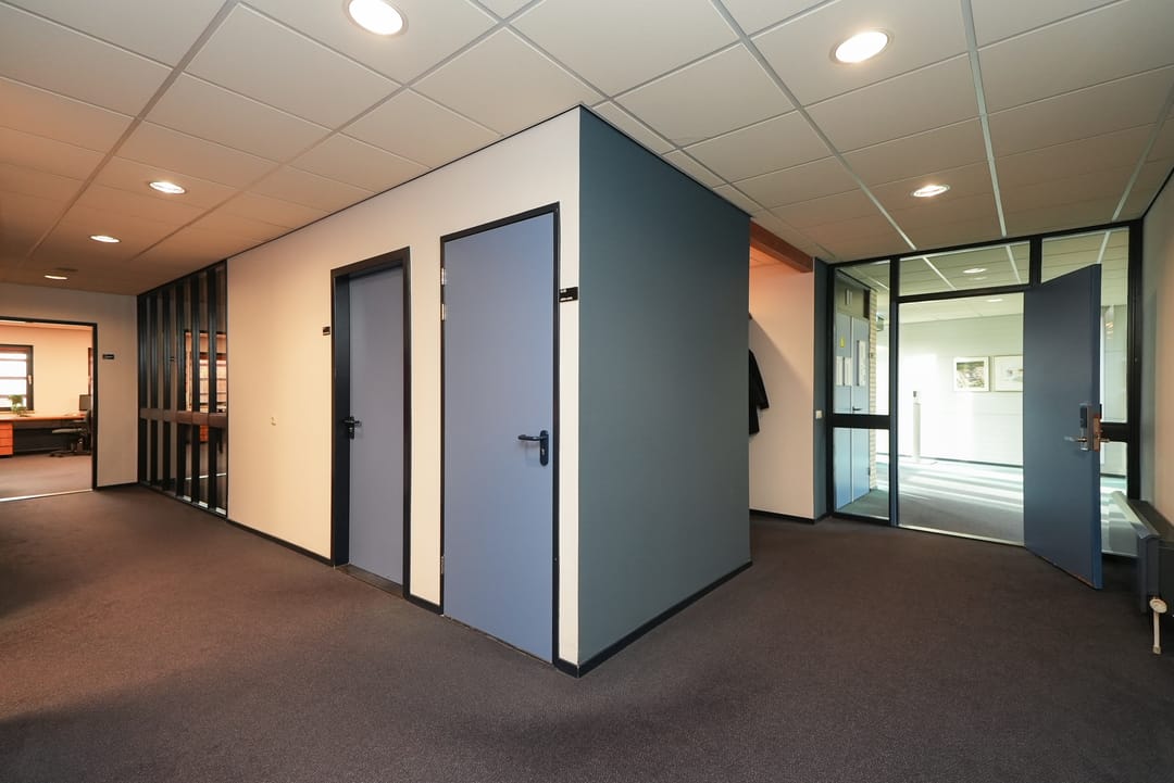 De kantoorruimte bevindt zich in het hoofdgebouw aan de straatzijde. In totaliteit is er voor de verhuur circa 387m² kantoorruimte beschikbaar. Het gaat hier om verschillende kantoorvertrekken waardoor het tevens bespreekbaar is om delen van dit totale kantoormetrage te huren.