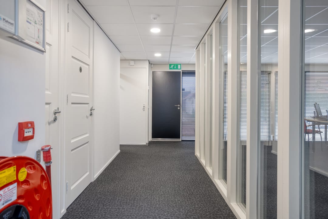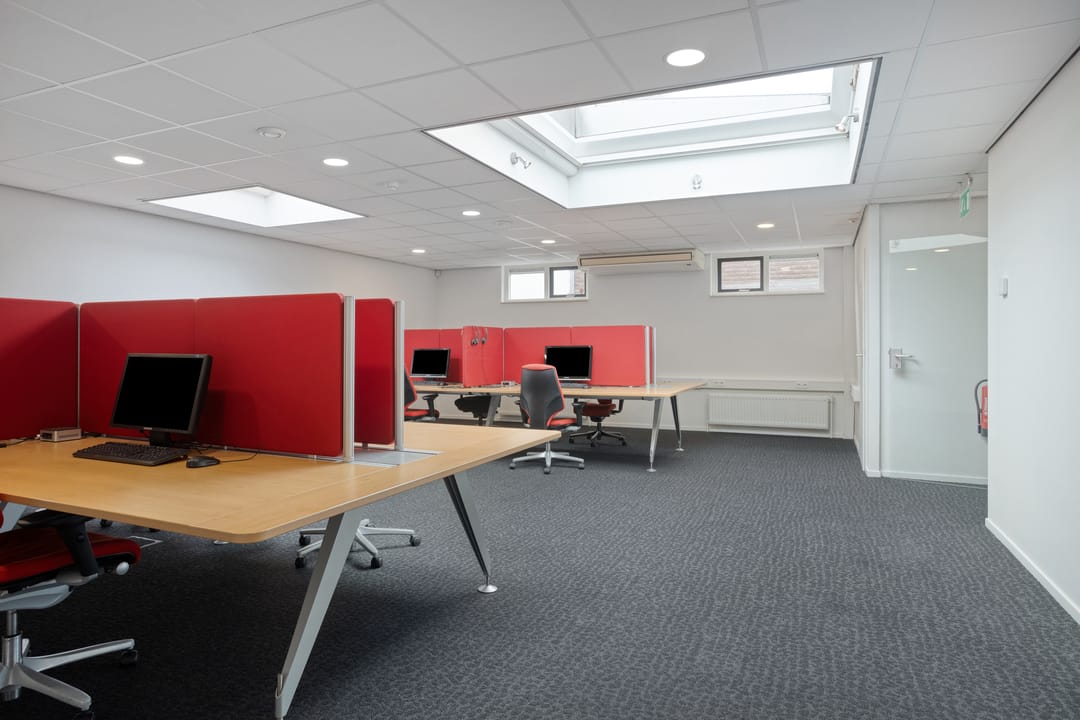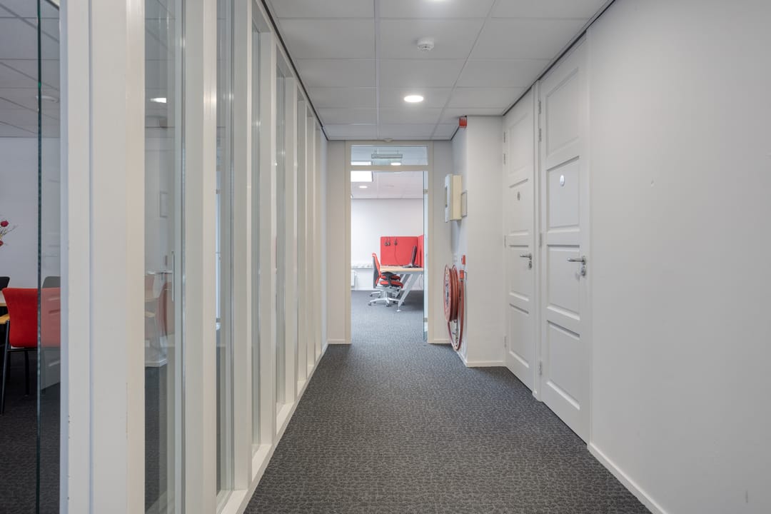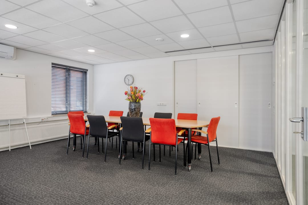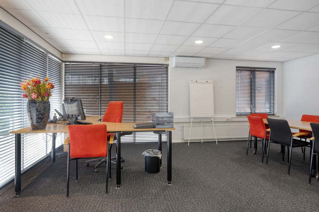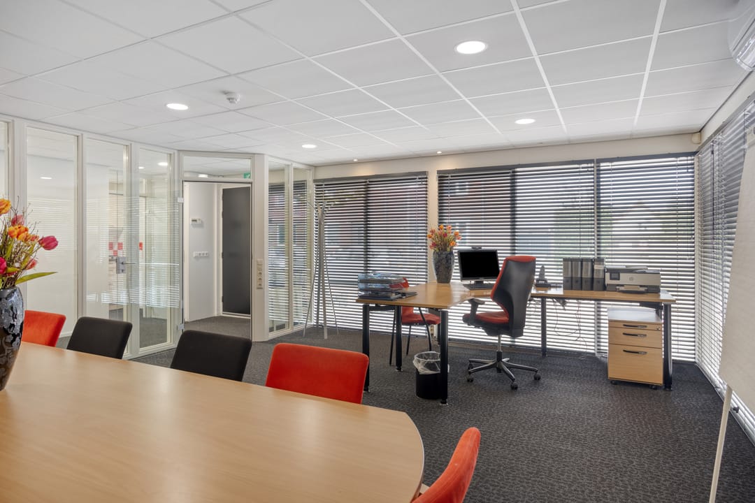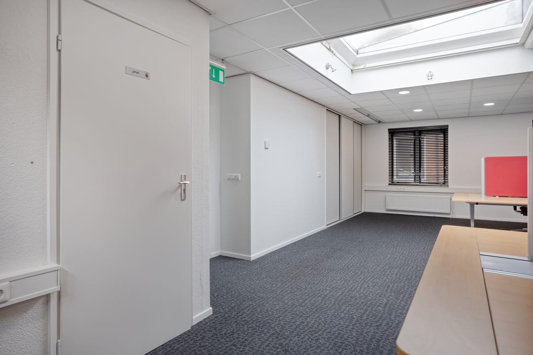Entree, hal met meterkast en 2 toiletruimtes, nette inbouwkeuken met diverse apparatuur, een royale kantoorruimte met brede etalage aan de voorzijde. Het pand beschikt aan de achterzijde over een tweede riante kantoor-,/spreek-,/vergader-,/cursusruimte v.v. veel privacy. Daarnaast beschikt deze tweede ruimte over een eigen, separate, toiletruimte en een achtergelegen berging alwaar zich de C.V.-opstelling bevindt. De beide kantoorruimtes zijn afsluitbaar en voorzien van vaste (schuif)kasten. Door de grote raampartijen aan de voorzijde en de riante lichtkoepels aan de achterzijde is het pand voorzien van veel daglicht.