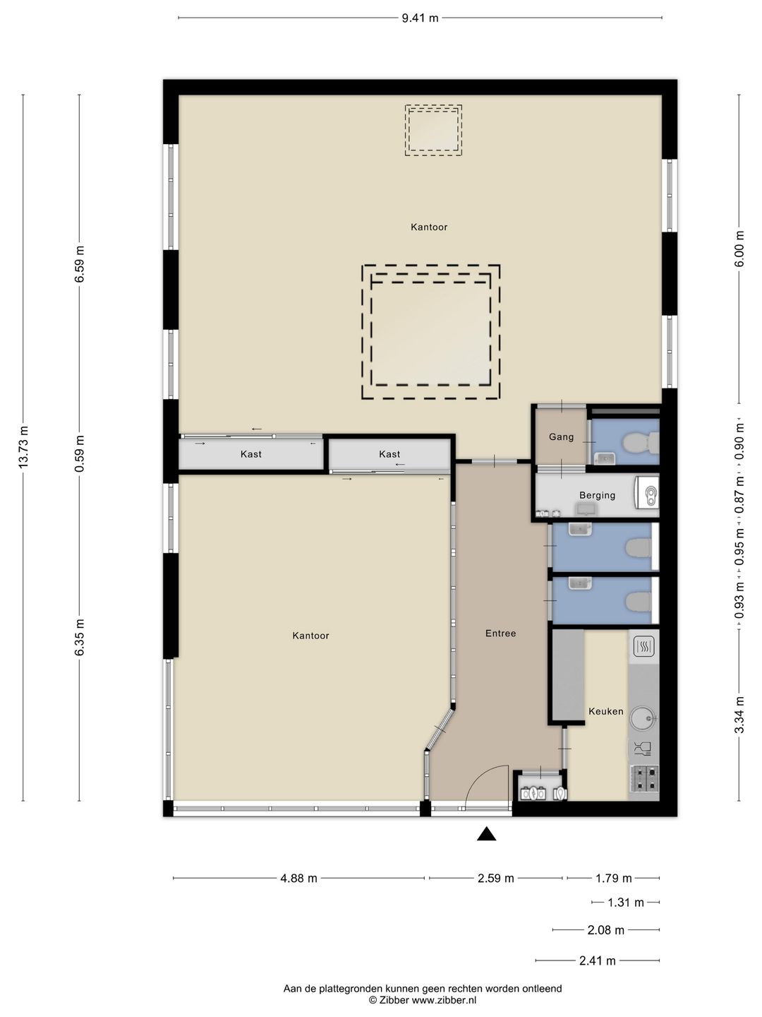 * De oppervlakten zijn gemeten door verkopend/verhurend makelaar uit een kopie bouwtekening. De opgegeven metrage is derhalve indicatief; er kunnen geen rechten aan worden ontleend noch kan er sprake zijn van enige verrekening achteraf.