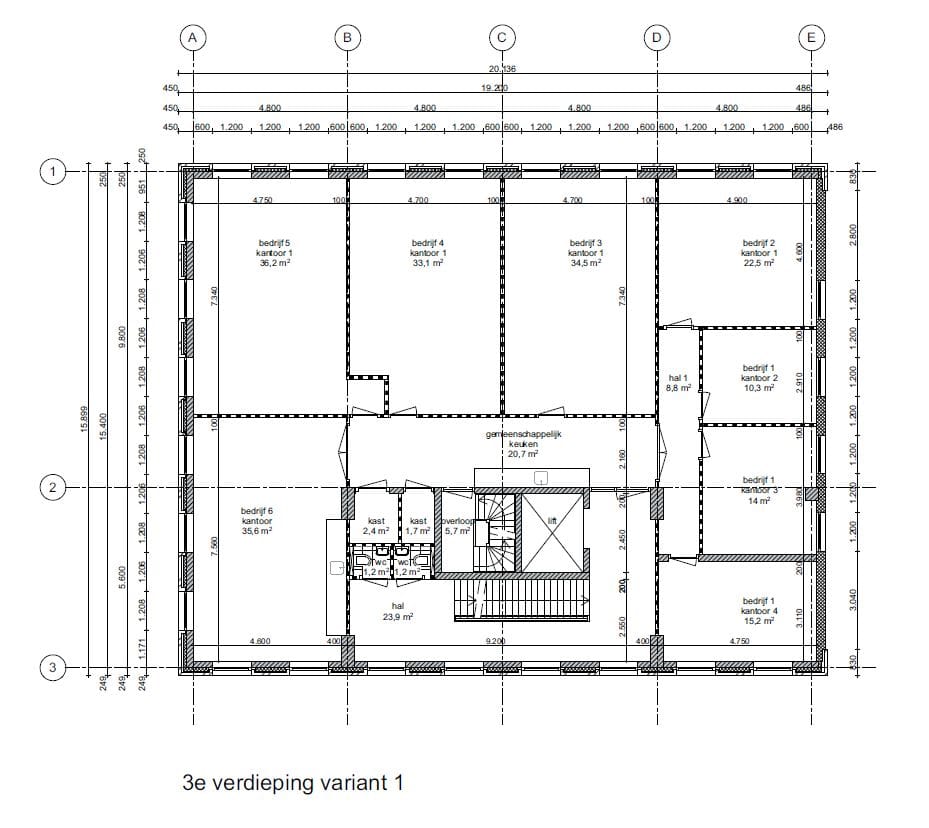 De beschikbare kantoorunits bevinden zich op de 3e verdieping en hebben de volgende oppervlakten: