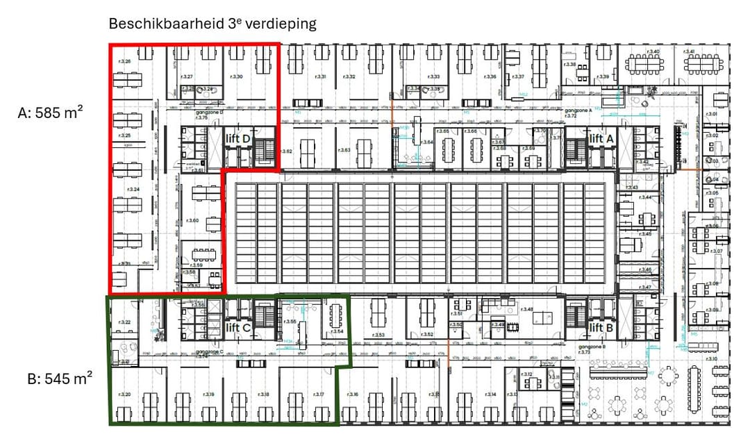 Het totale verhuurbare oppervlak van het gebouw bedraagt circa 30.000 m² v.v.o. kantoorruimte. Voor de verhuur komt een gedeelte van de 3e verdieping beschikbaar ter grootte van circa 1.130 m² v.v.o. kantoorruimte, waarbij deelverhuur vanaf 545 m² v.v.o. kantoorruimte mogelijk is.