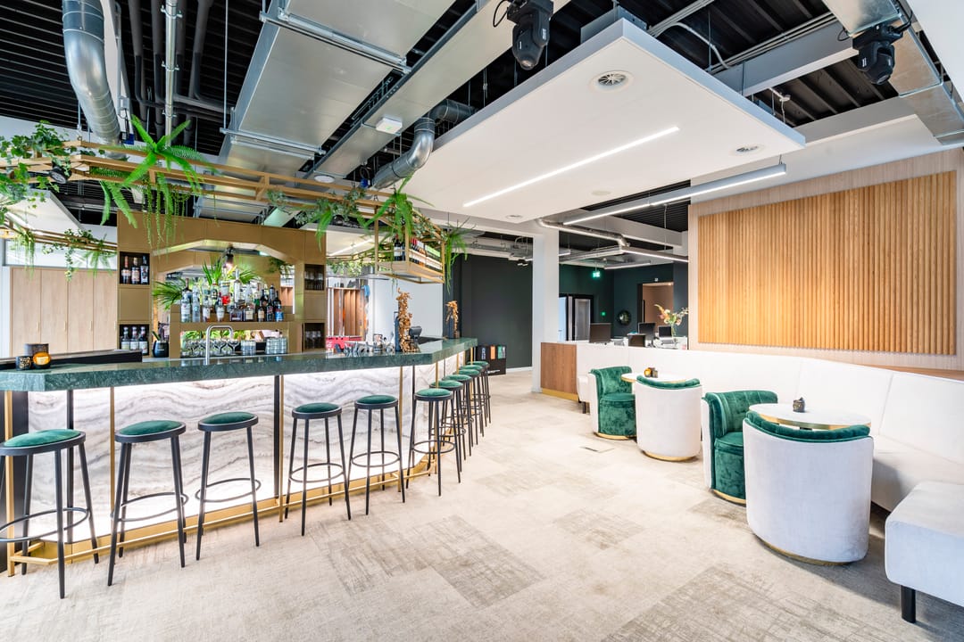 Het inbouwpakket is in 2022 geplaatst door een professionele inrichter met oog voor detail. De ruimte kenmerkt zich door de extra vrije hoogte en eigen sanitaire voorzieningen. Op de verdieping is deze hoogte extra benadrukt door de klimaatplafondeilanden voorzien van ledverlichting en fancoilunits ten behoeve van klimaatbehandeling.