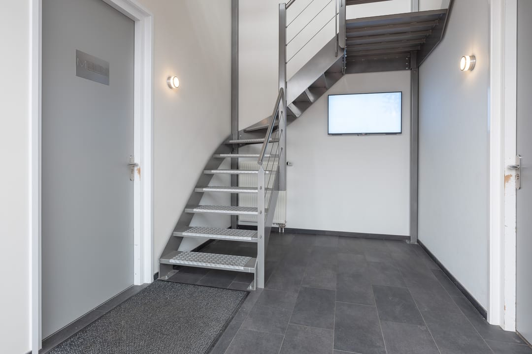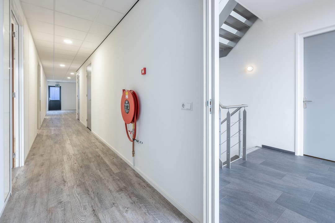 Gezamenlijke entrée op de begane grond met trapopgang naar de eerste verdieping. De eerste verdieping beschikt over drie kantoorruimten, twee toiletten en een luxe pantry.