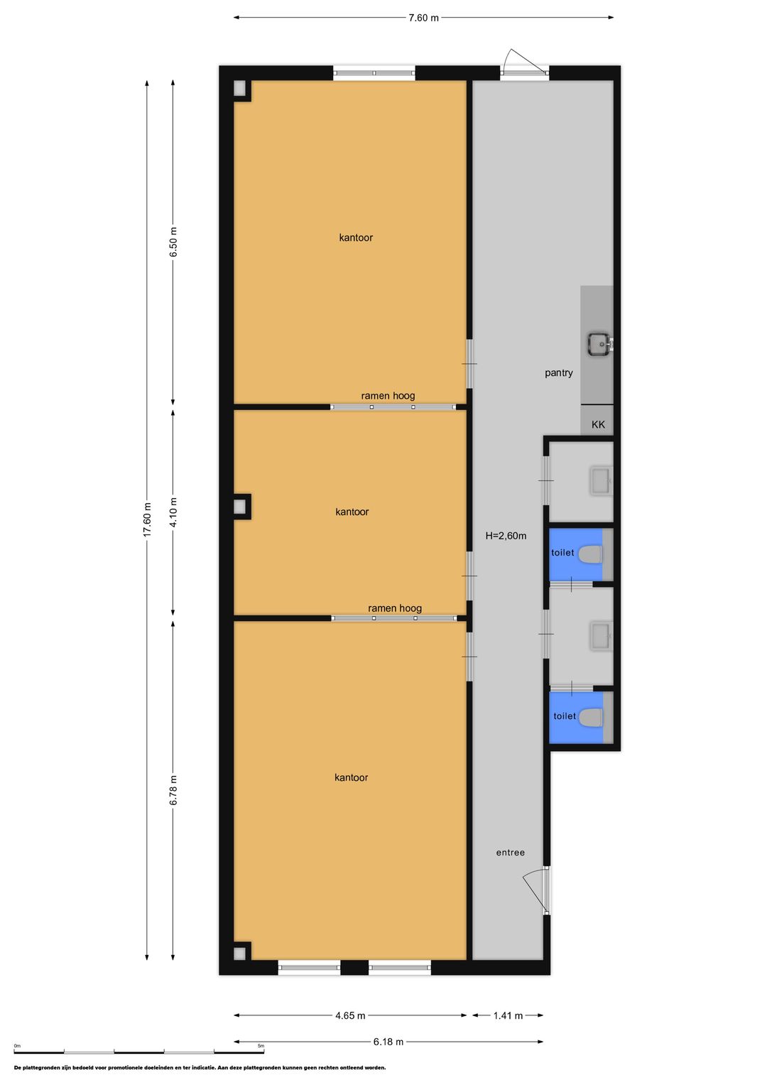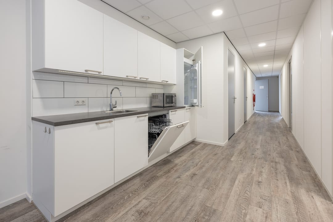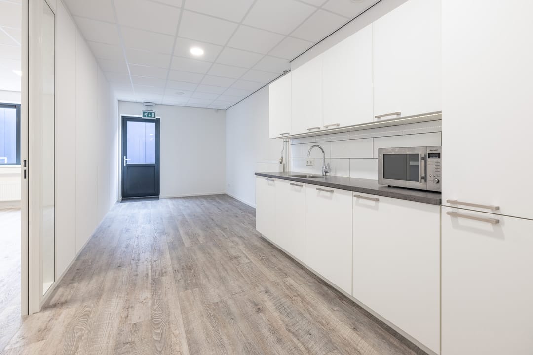 Kantoorruimte zijn voorzien van LED-verlichting, systeemplafond, pvc vloer, radiatoren, utp-aansluitingenen een airco-unit. De raampartijen aan de voorzijde zijn voorzien van zonwering. De pantry beschikt over een koelkast, magnetron en vaatwasser. Aan de achterzijde van de verdieping is een nooduitgang aanwezig.